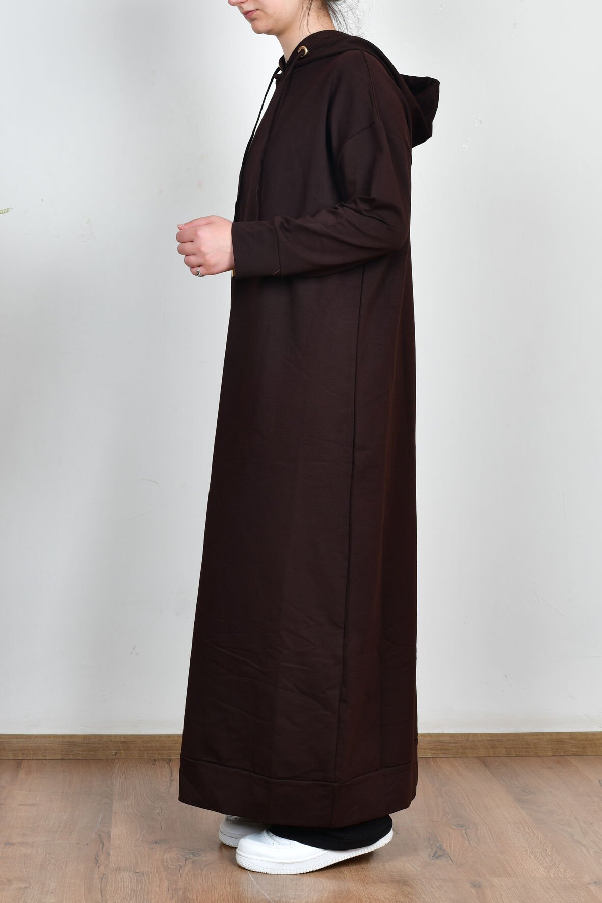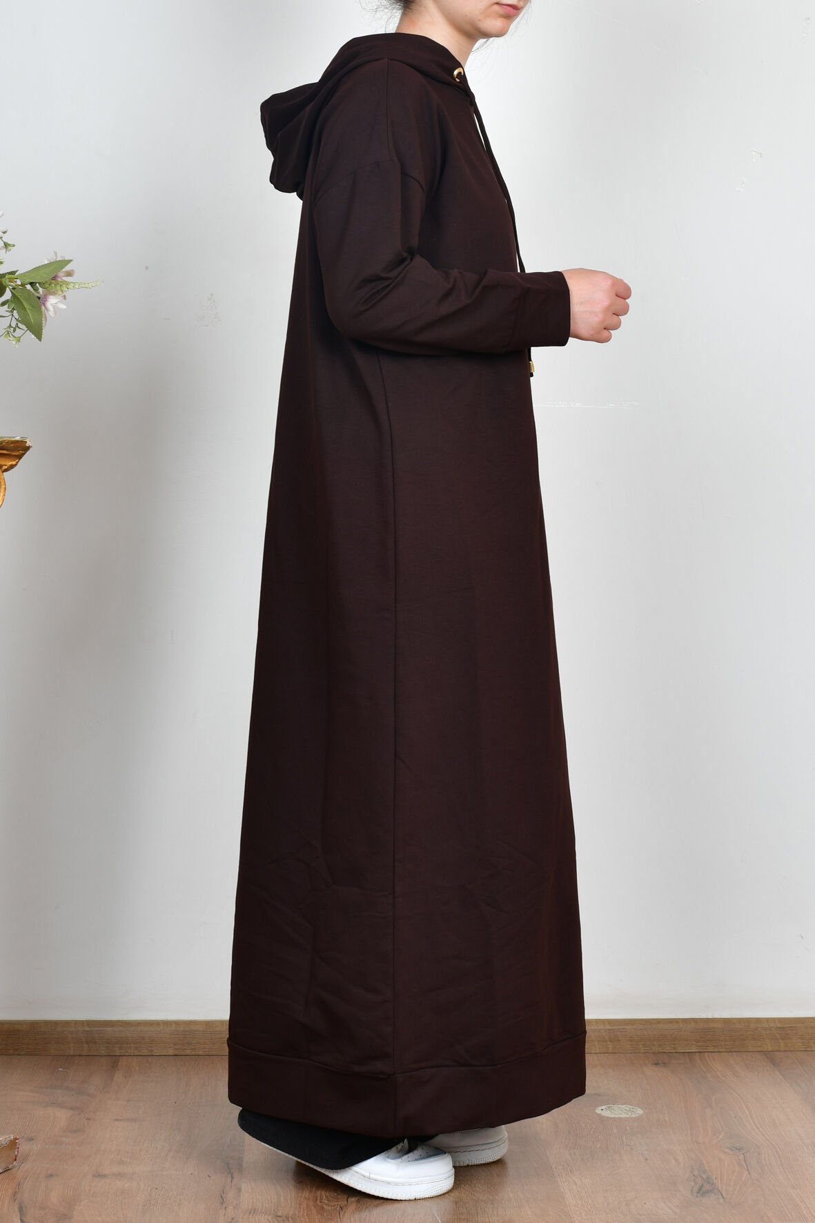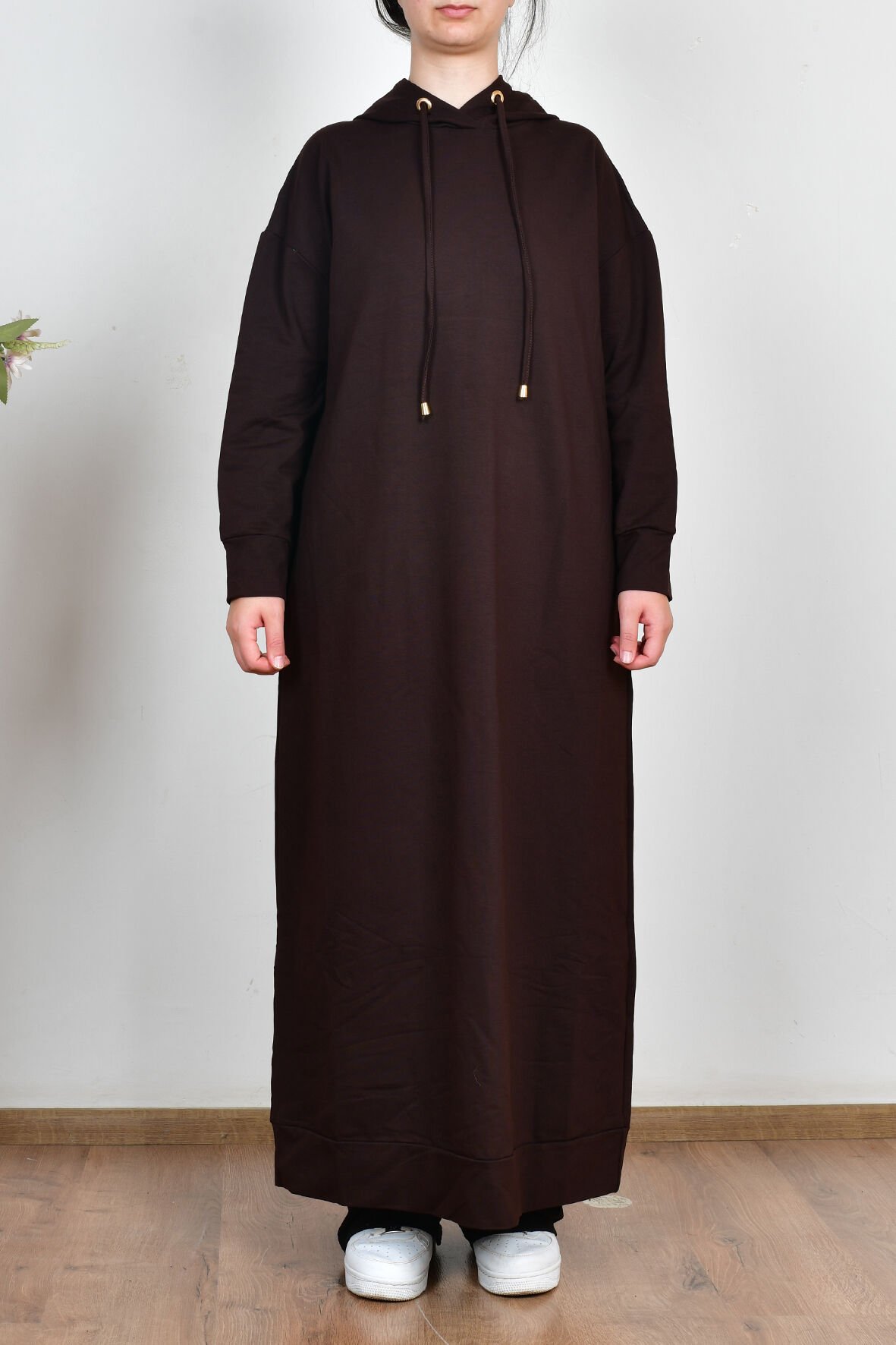 Allday 21OB60008AL0 Acı Kahve Kapüşonlu Likralı Örme Elbise