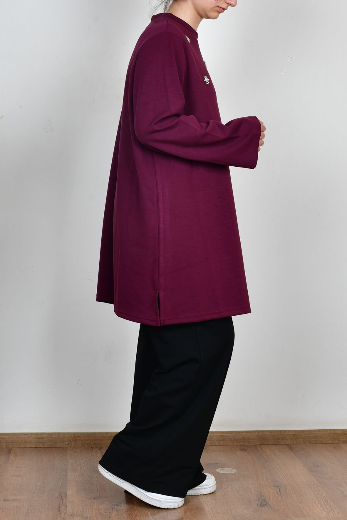 Allday B50310A9 Siyah Kadın İnci İşlemeli Tunik