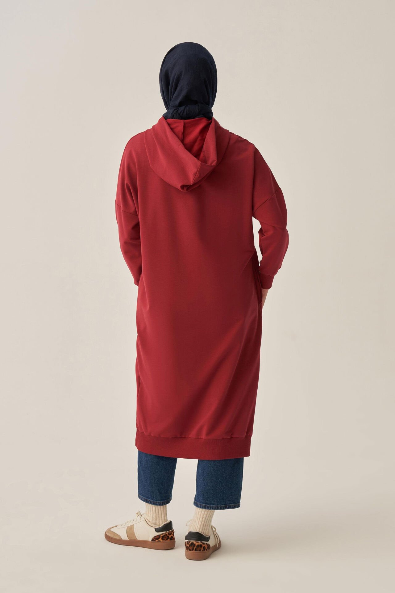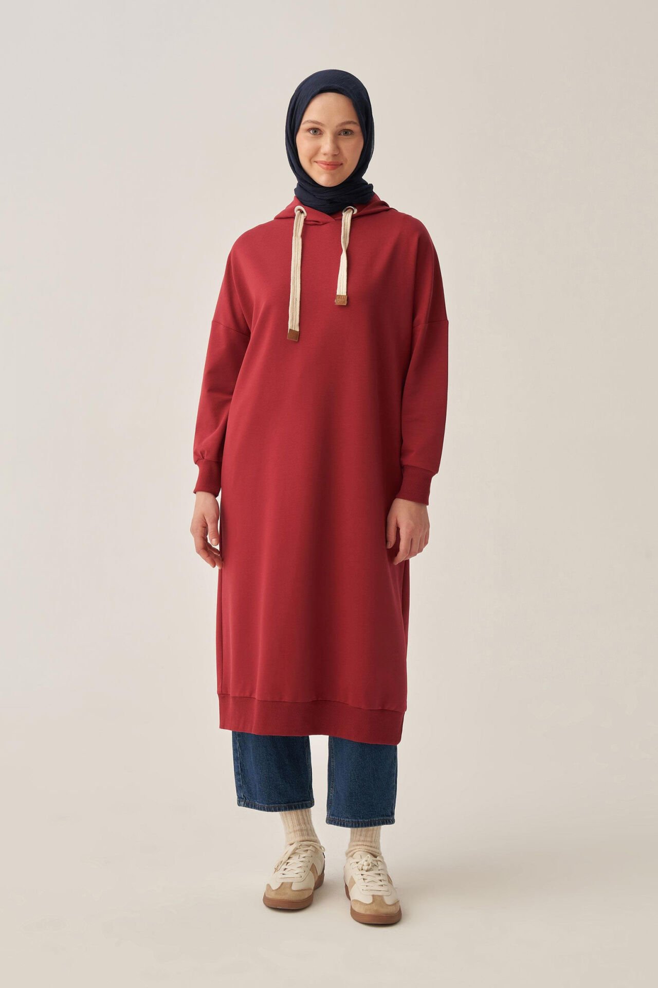 Allday B52018A0 Bordo Kadın Kuşgözlü Kapüşonlu Cepli Likralı Uzun Sweat