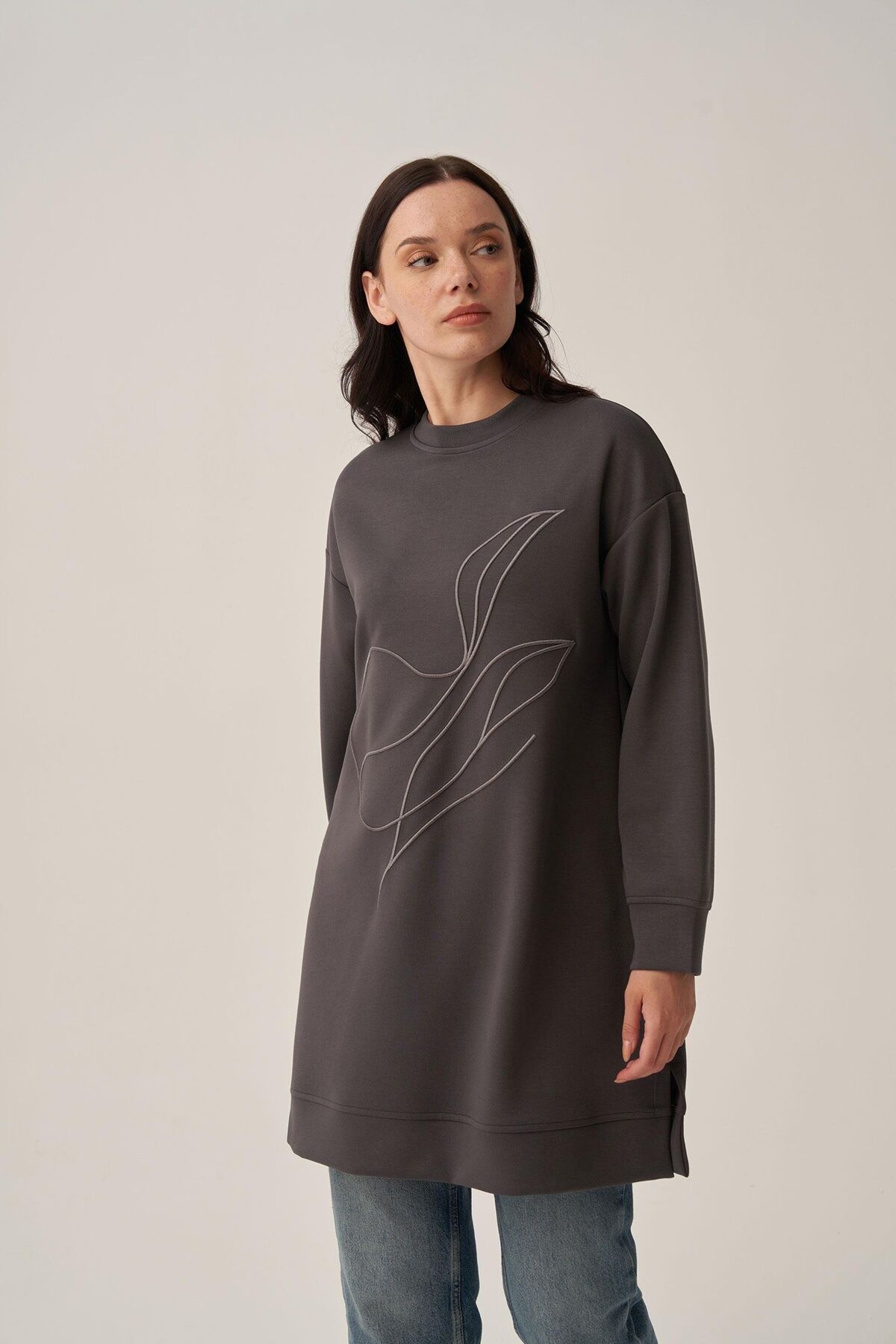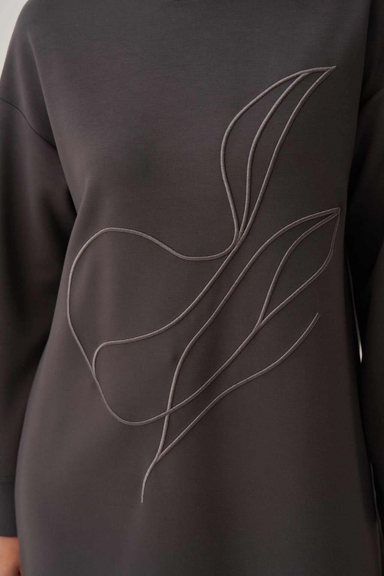 Ürün ÖzellikleriŞıklığı detaylarda arayanlara özel Antrasit-Yumuşak Dokulu Nakışlı Sweatshirt ile zarif bir görünüm yakalayın. Günlük ve özel kombinler için ideal tasarım ALLDAY’de!