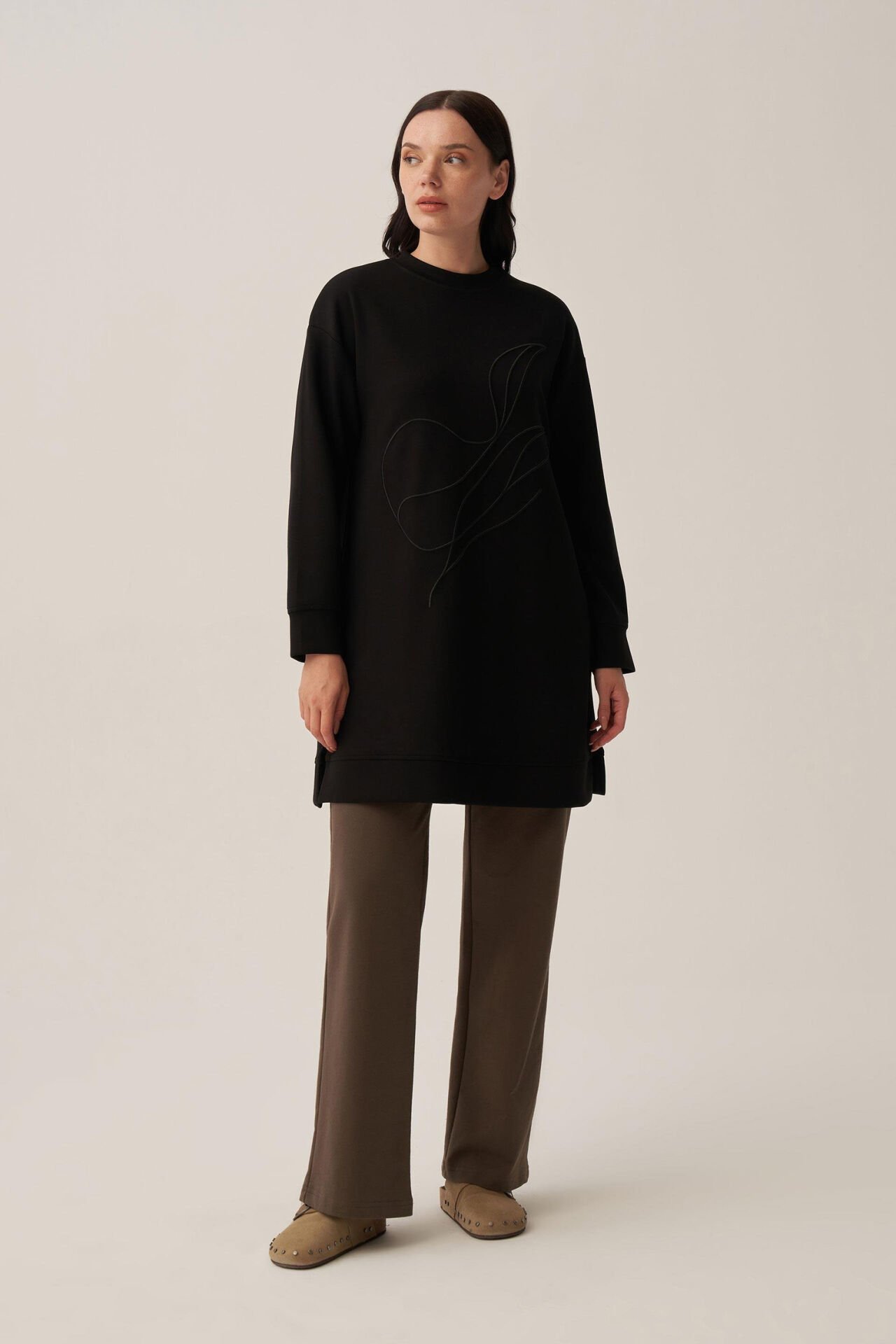 Ürün ÖzellikleriŞıklığı detaylarda arayanlara özel Siyah-Yumuşak Dokulu Nakışlı Sweatshirt ile zarif bir görünüm yakalayın. Günlük ve özel kombinler için ideal tasarım ALLDAY’de!