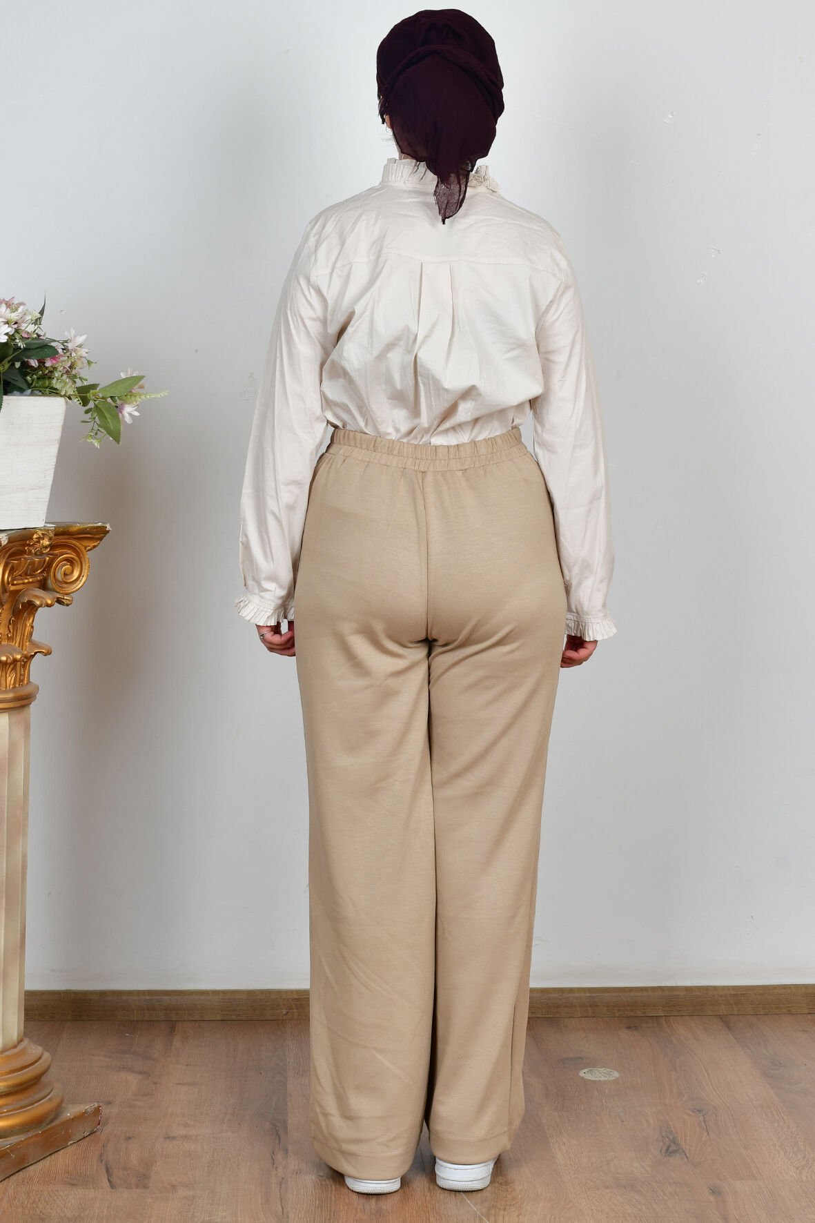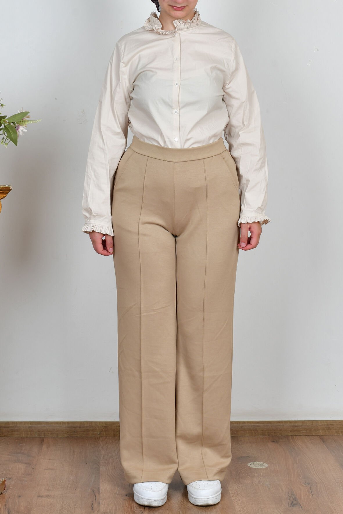 Allday B77135A0 Bej Kadın Beli Lastikli Yumuşak Dokulu Palazzo Pantolon