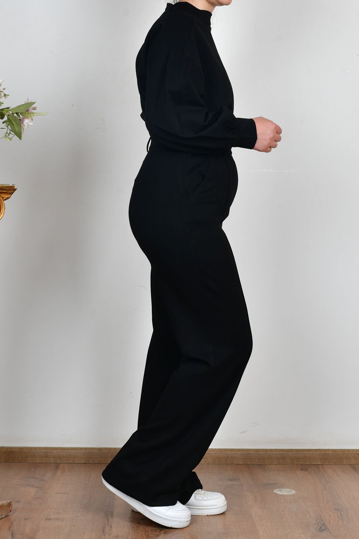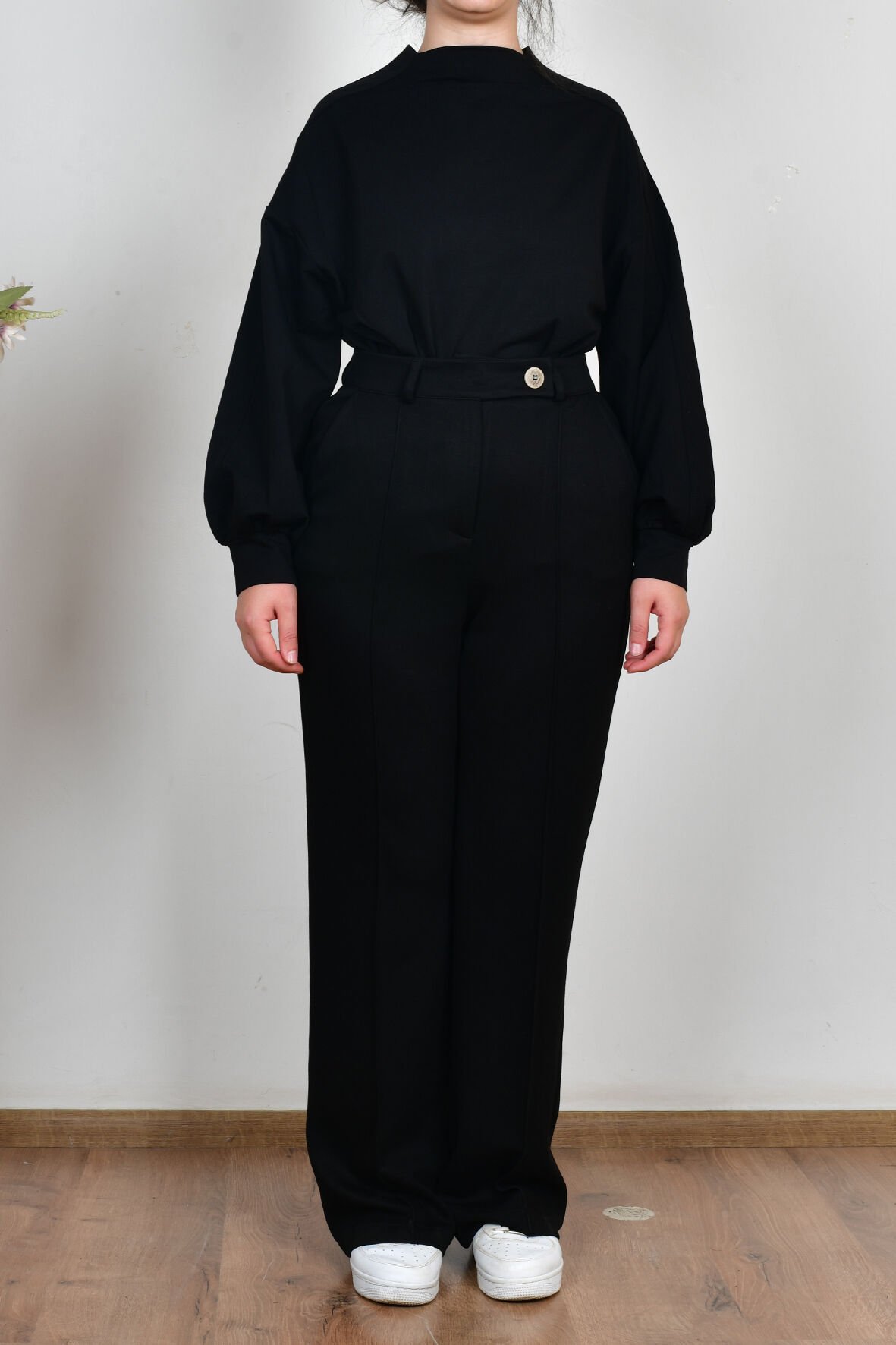 Allday B77137A0 Siyah Kadın Yumuşak Dokulu Palazzo Pantolon