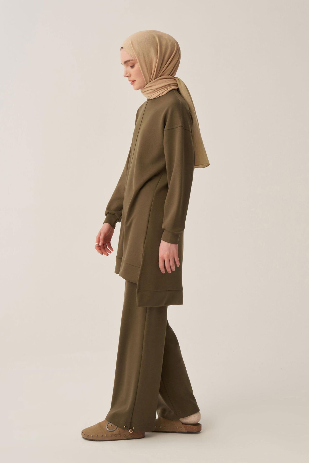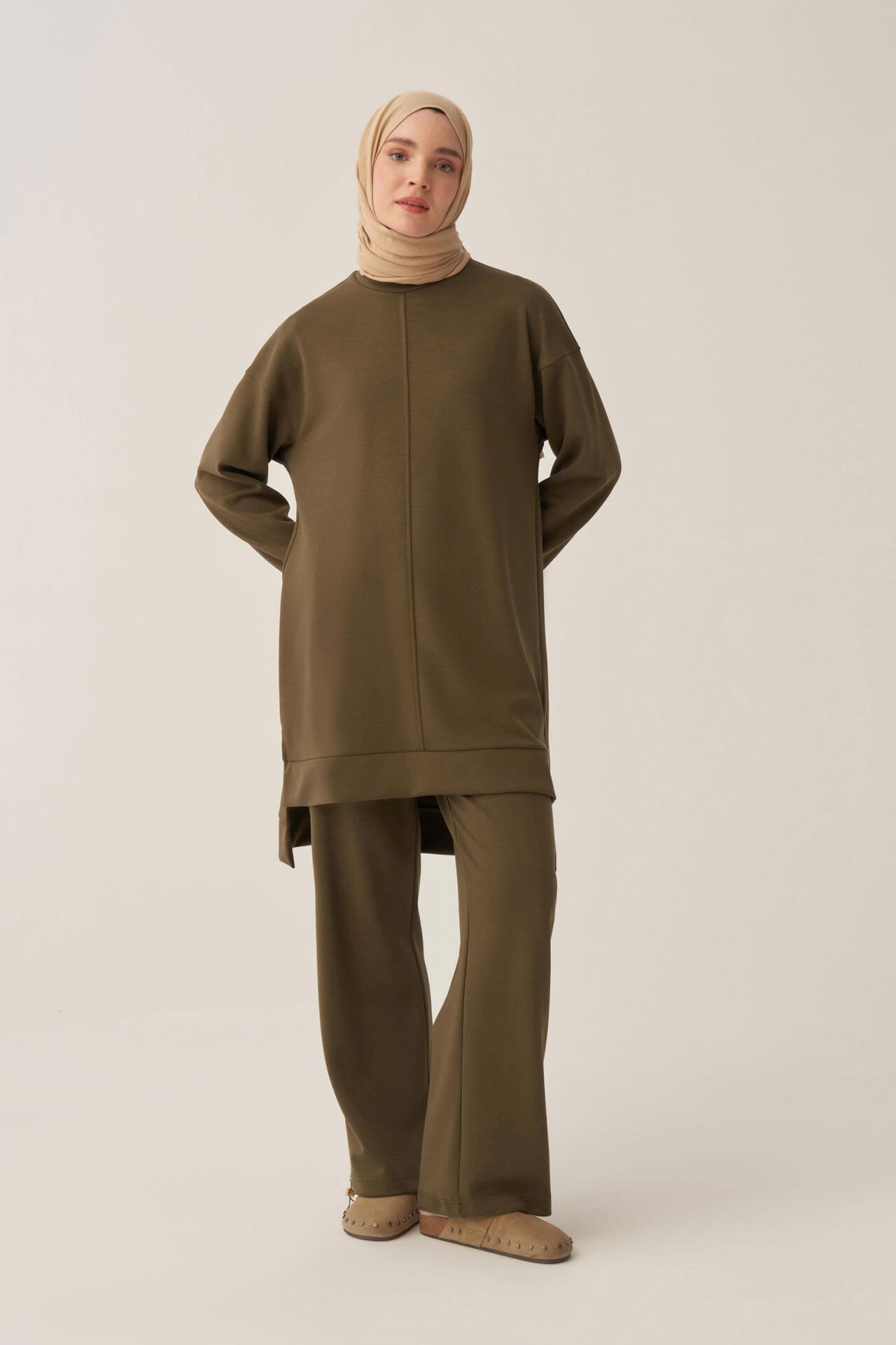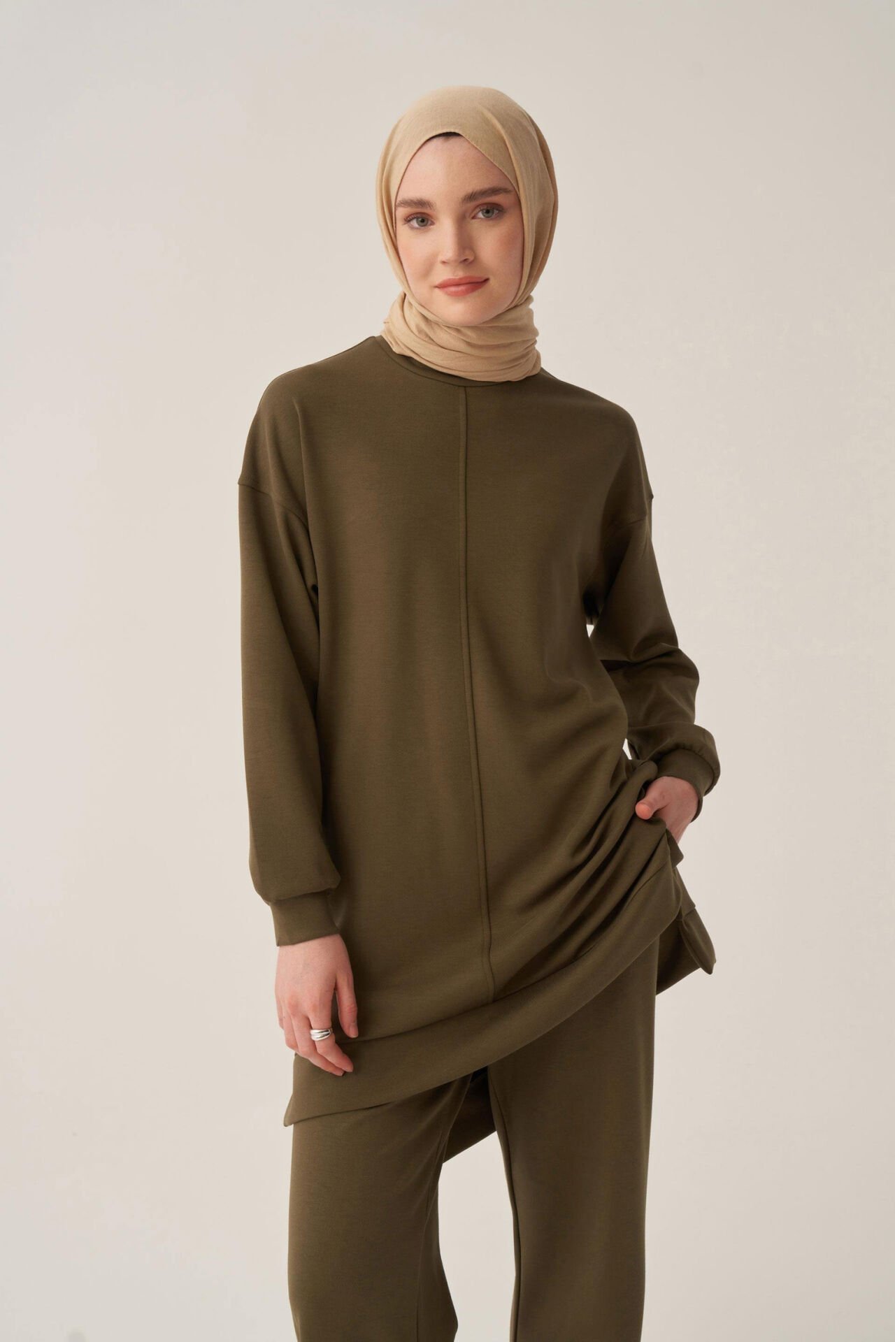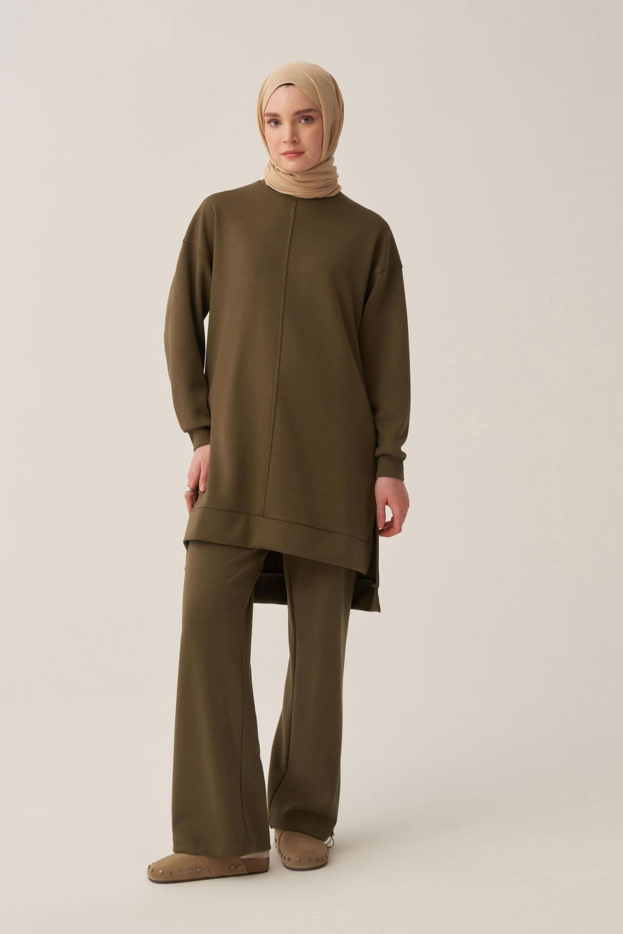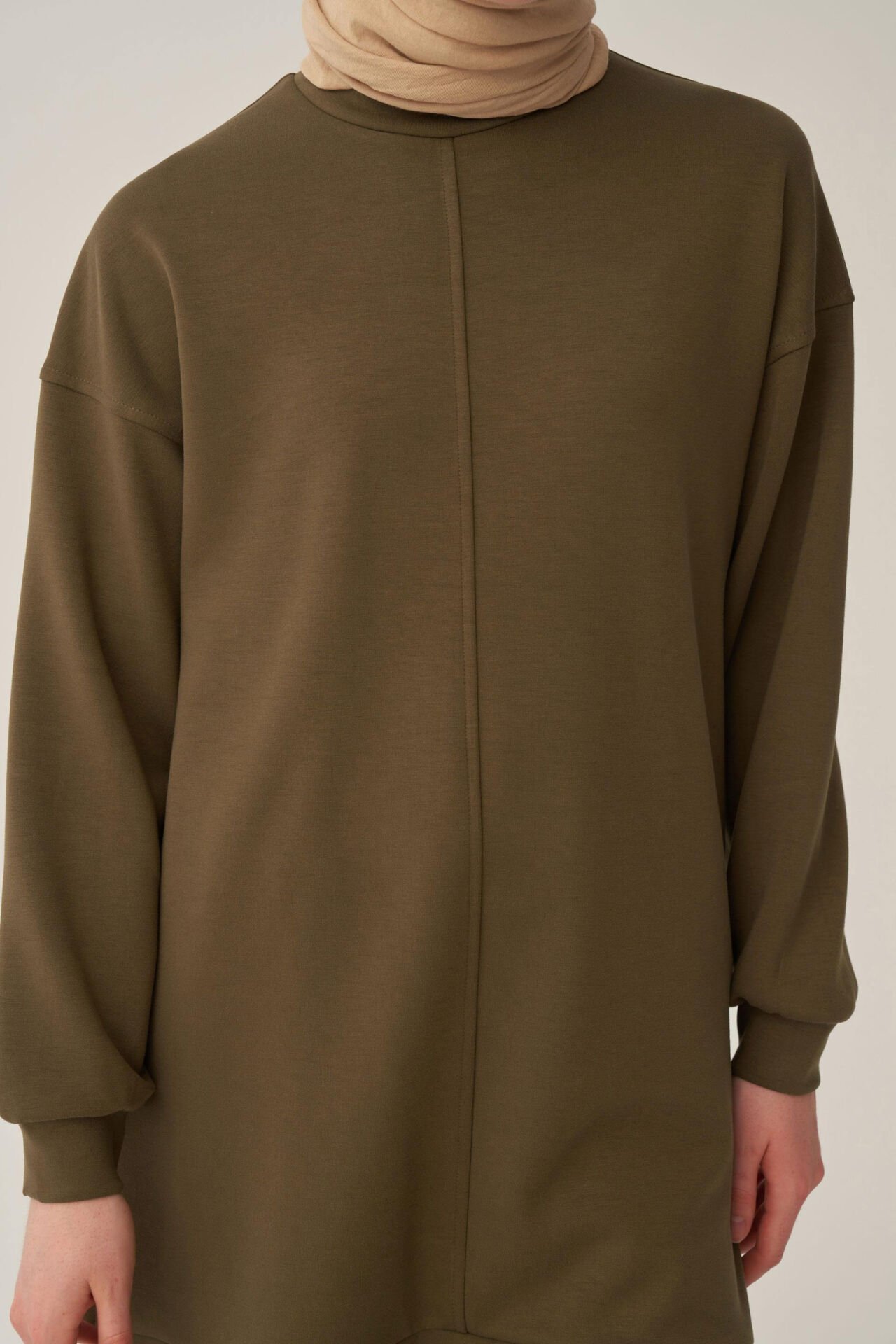 Allday BOB52319AL0 Haki Kadın Yumuşak Dokulu Bisiklet Yaka Sweat