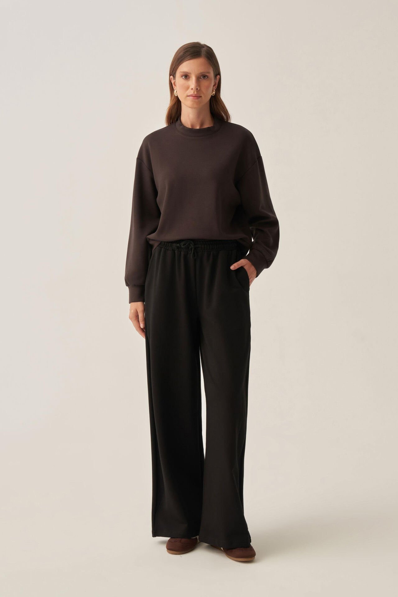 Allday BOB73036AL0 Siyah Kadın Pamuklu Bol Paça Eşofman Altı
