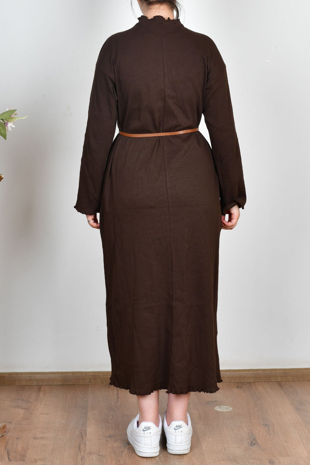 Allday W60189A0 Kahverengi Kadın Fırfır Detaylı Kaşkorse Elbise
