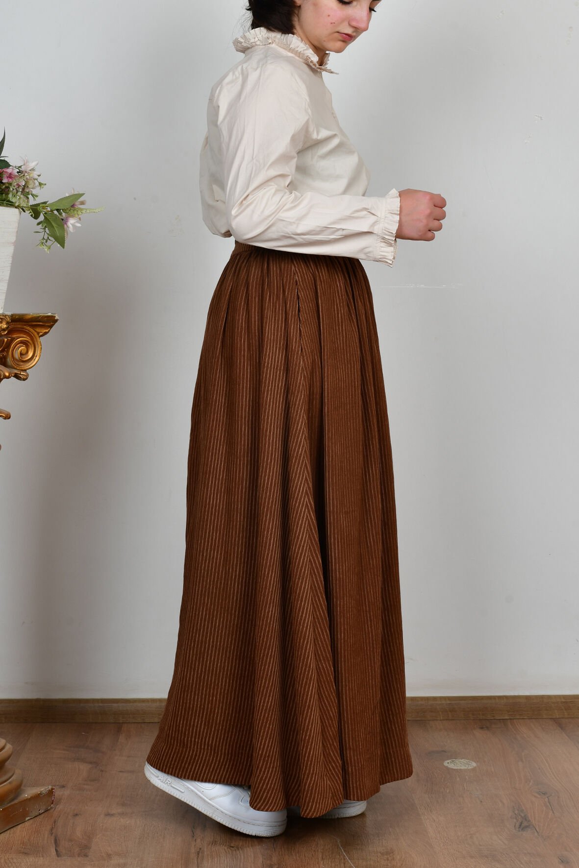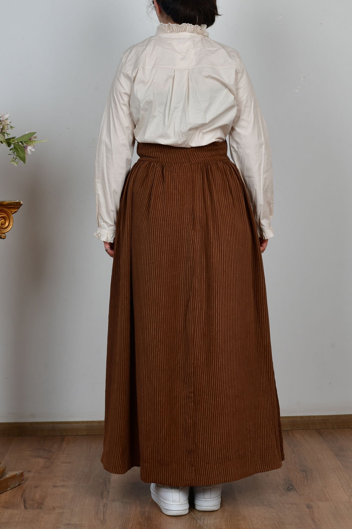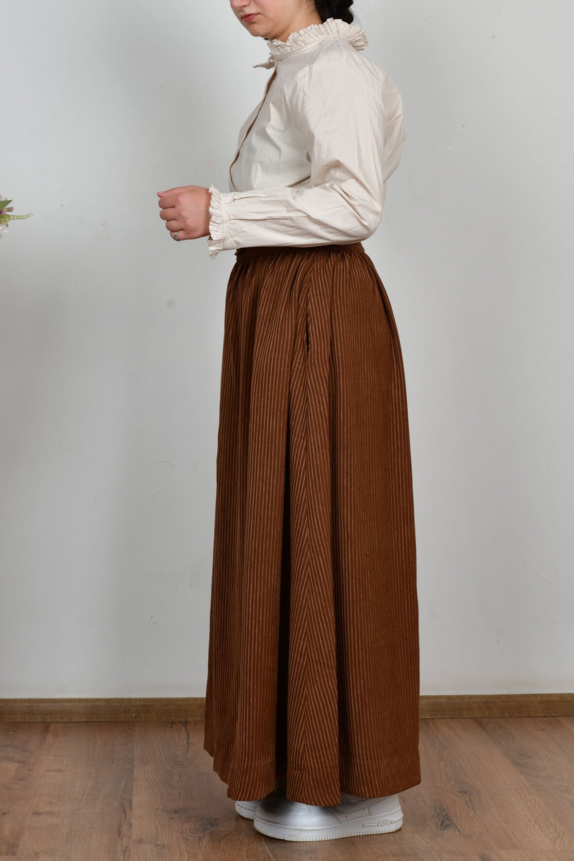 Allday W61011A0 Kahve Kadın Kloş Fitilli Kadife Etek