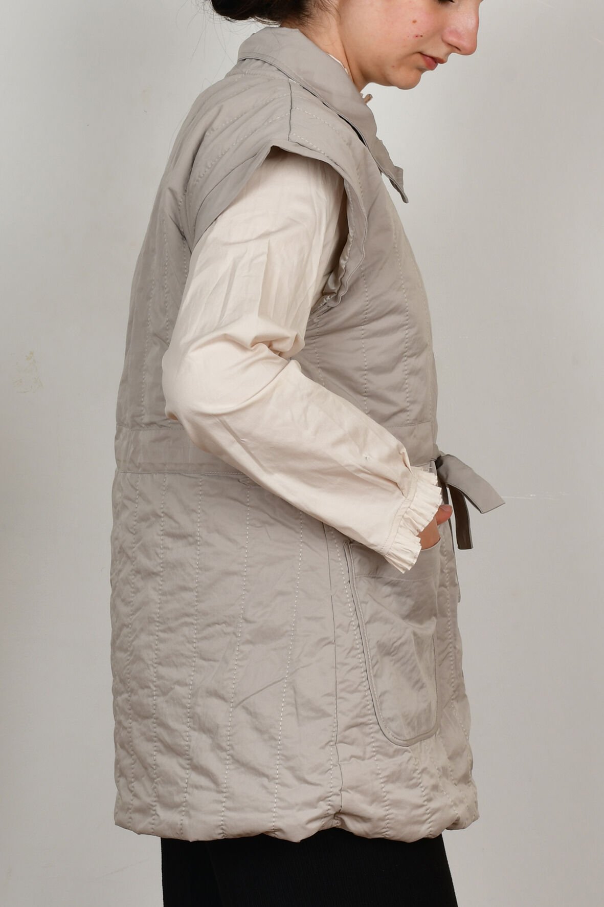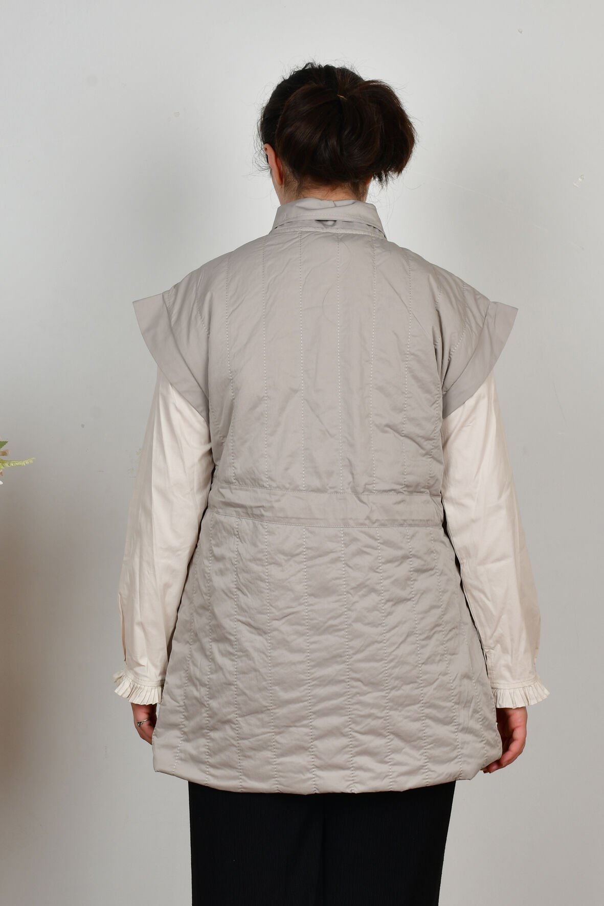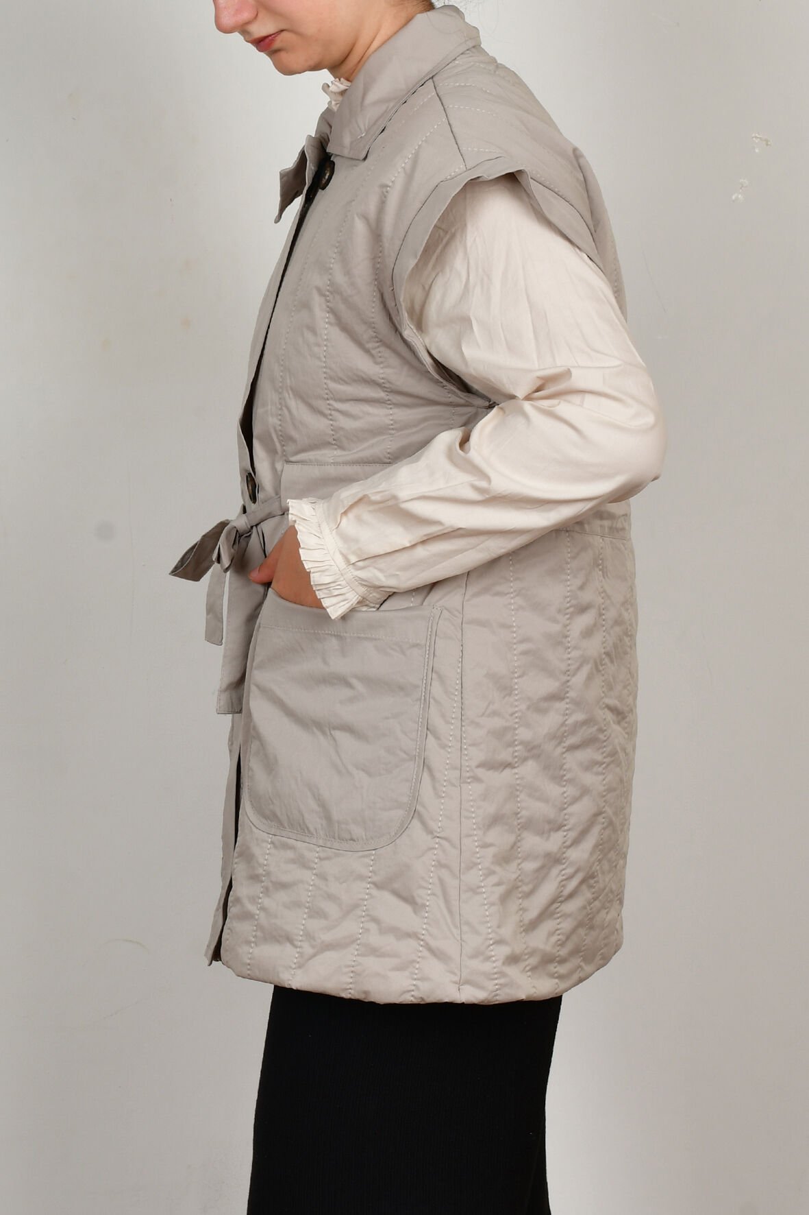 Allday W90044A0 Taş Kadın Düğmeli Kemerli Kapitone Yelek