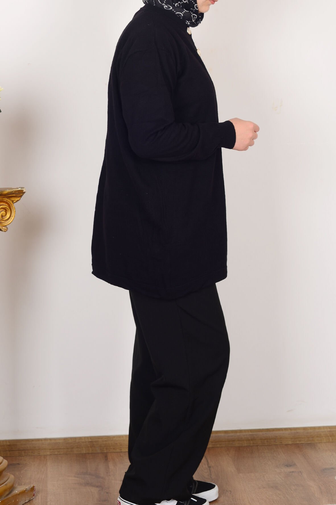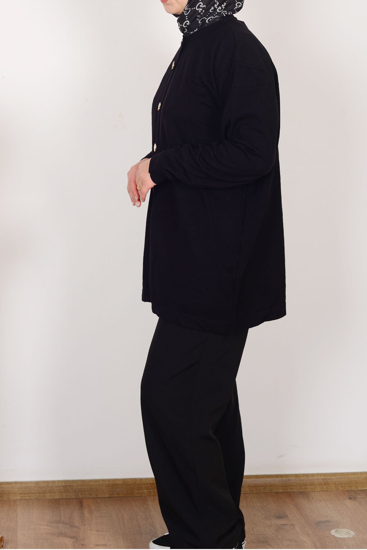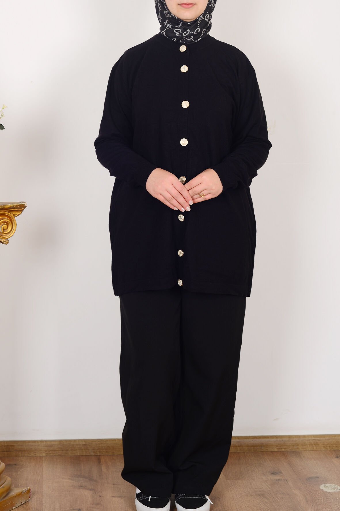 Allday W93170A9 Siyah Kadın Patı Dügmeli Triko Hırka