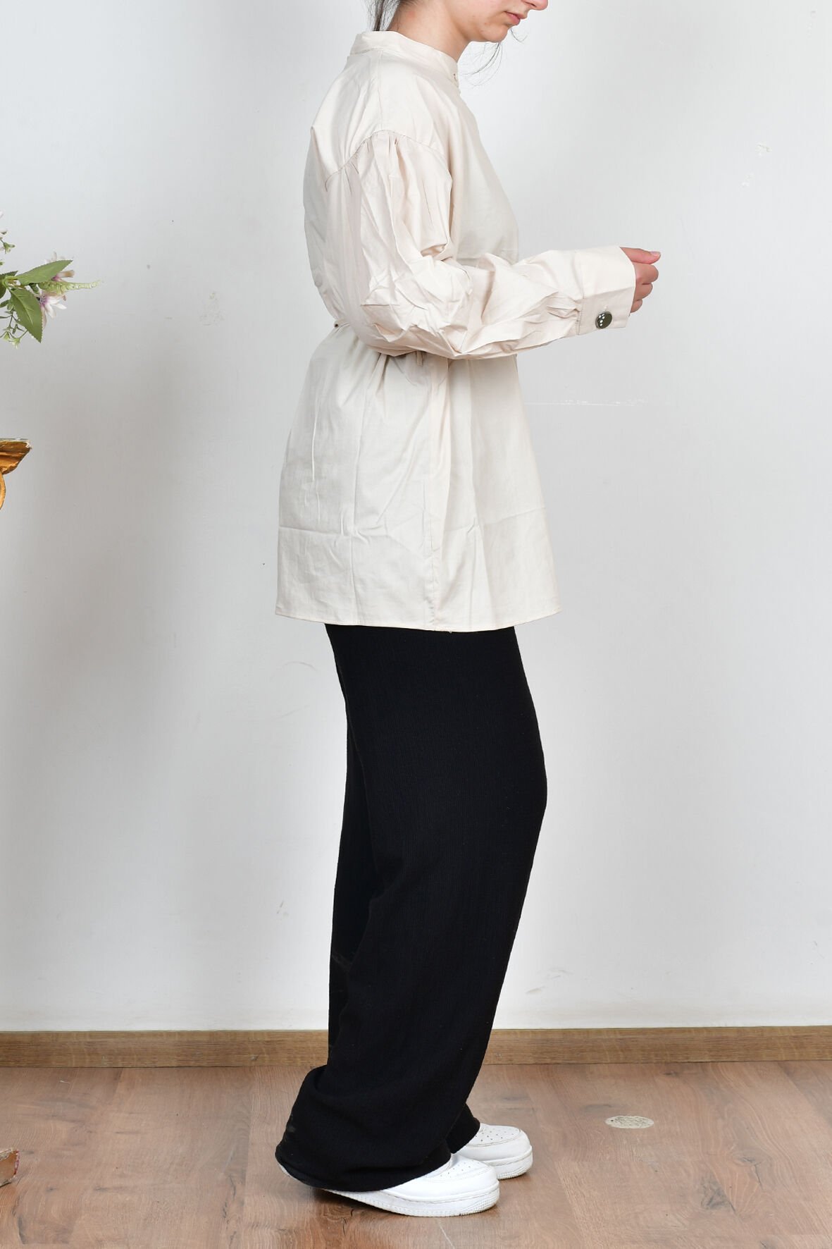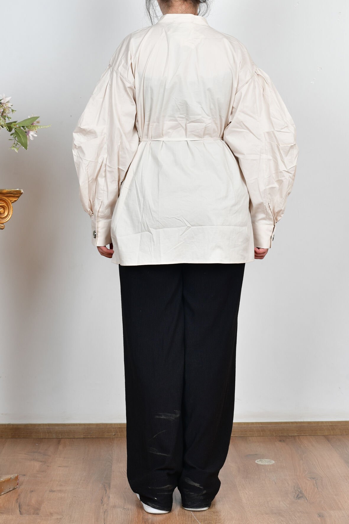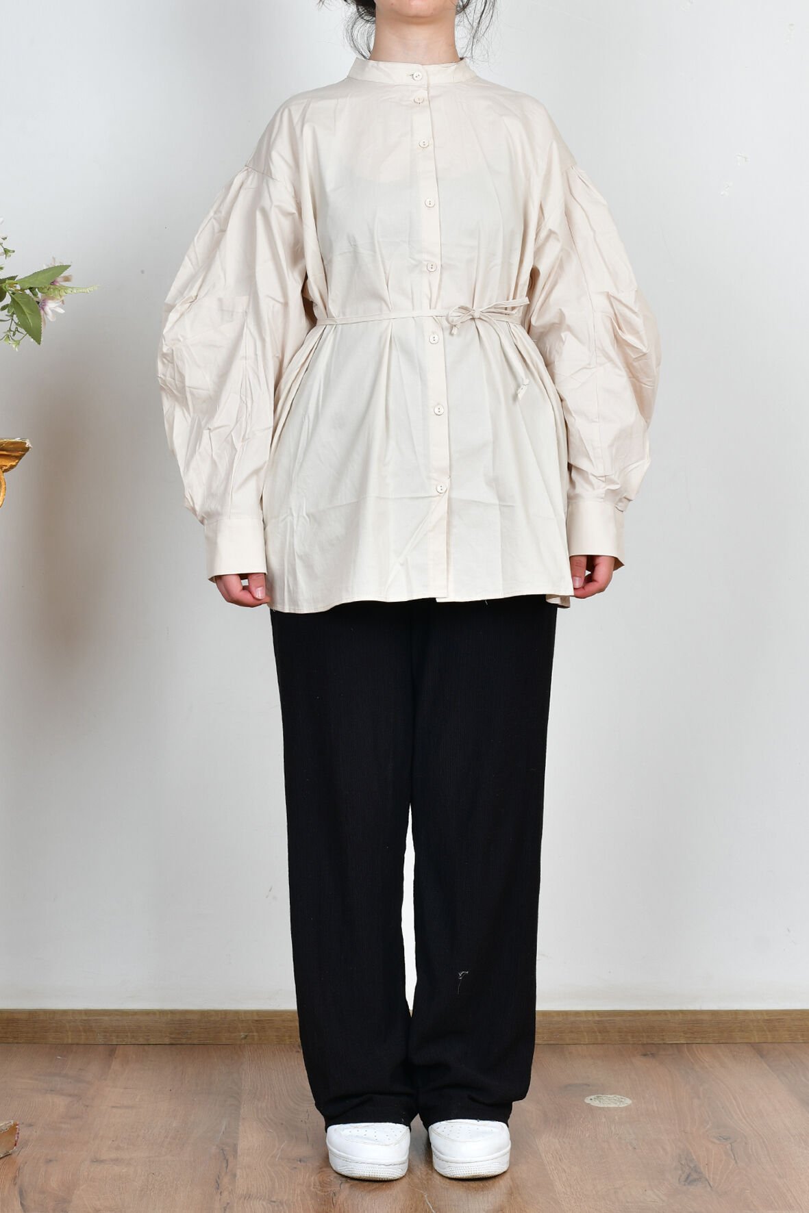Allday X51314A0 Taş Kadın İnce Kuşaklı Pileli Likralı Poplin Gömlek