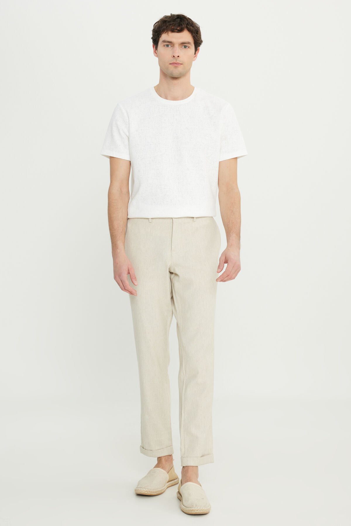 %39 Tencel %30 Keten %29 Pamuk %2 Elastan Diagonal Slim Fit Yan Cep Normal Bel ALTINYILDIZ CLASSICS ACE001252130BEJ