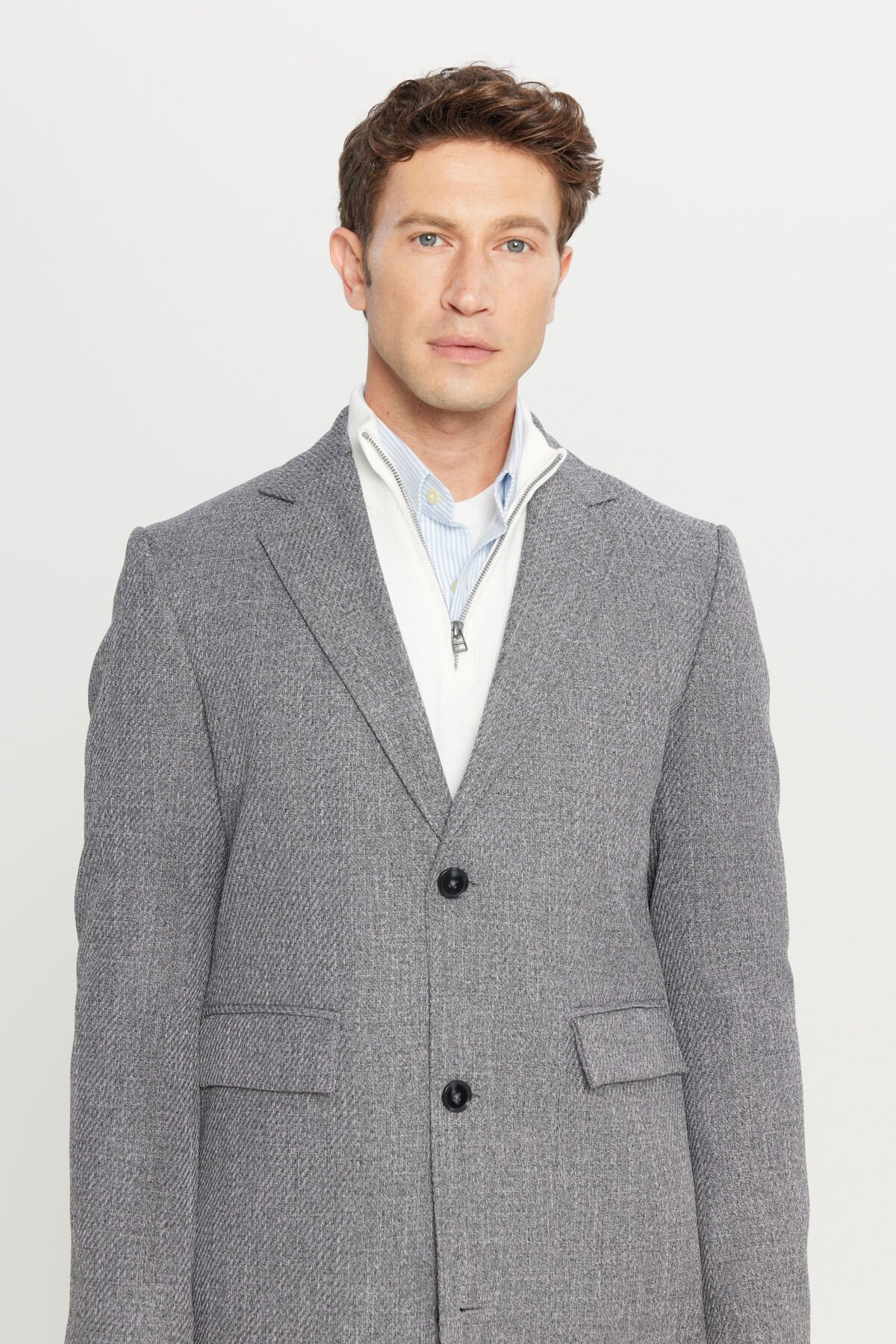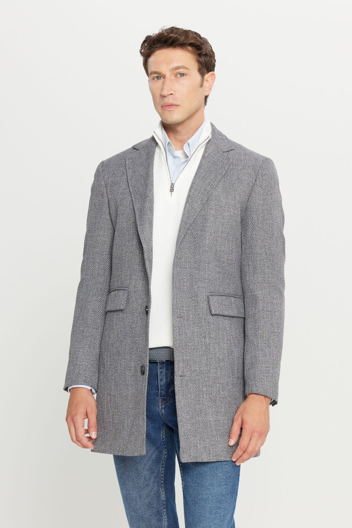 Altınyıldız ACE005261074 Antrasit Erkek Standart Fit Normal Kesim Mono Yaka Desenli Kapak Cepli Palto