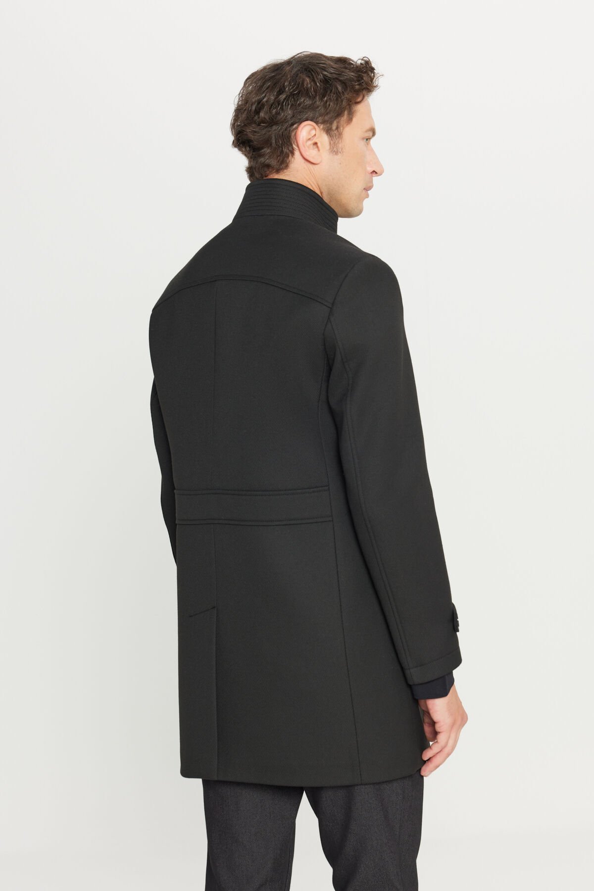 Altınyıldız ACE007261085 Siyah Erkek Yünlü Standart Fit Normal Kesim Dik Yaka Diagonal Desenli Yan Cepli Kaban