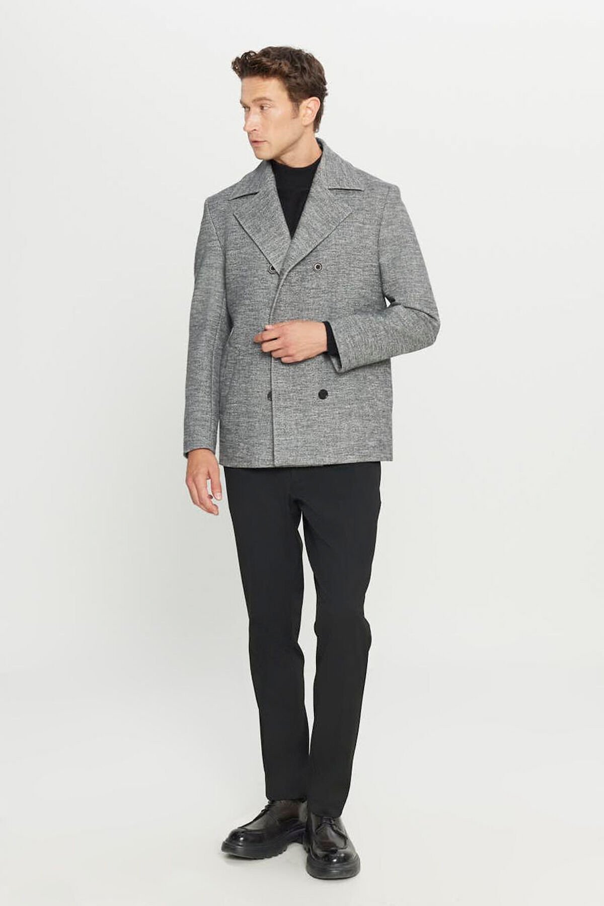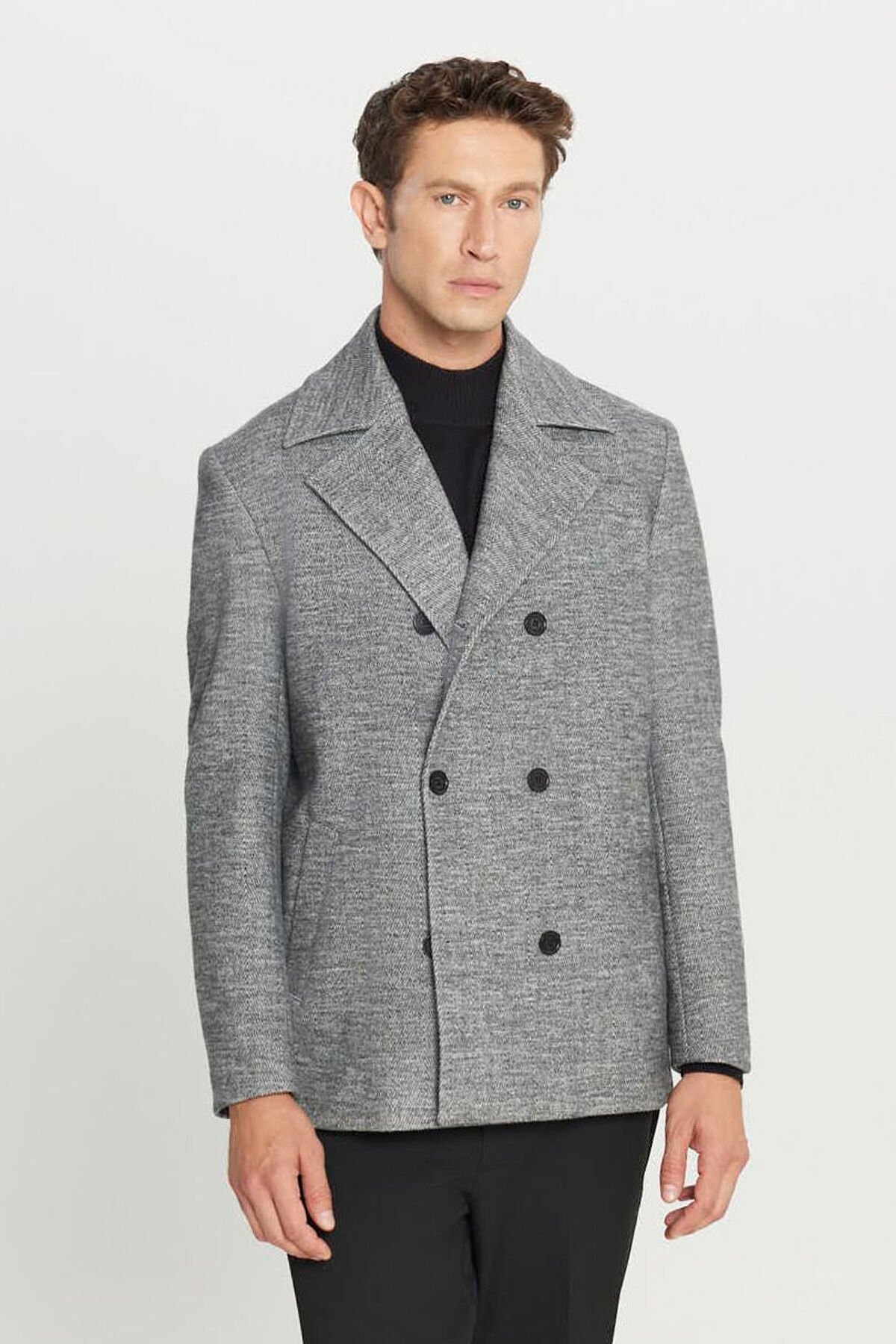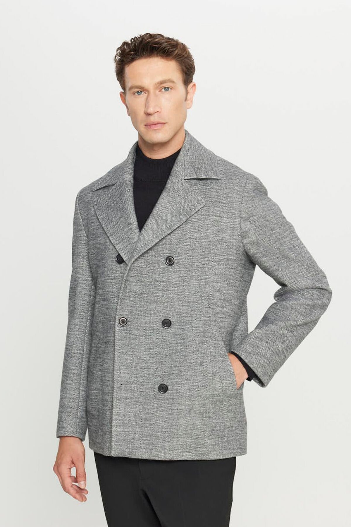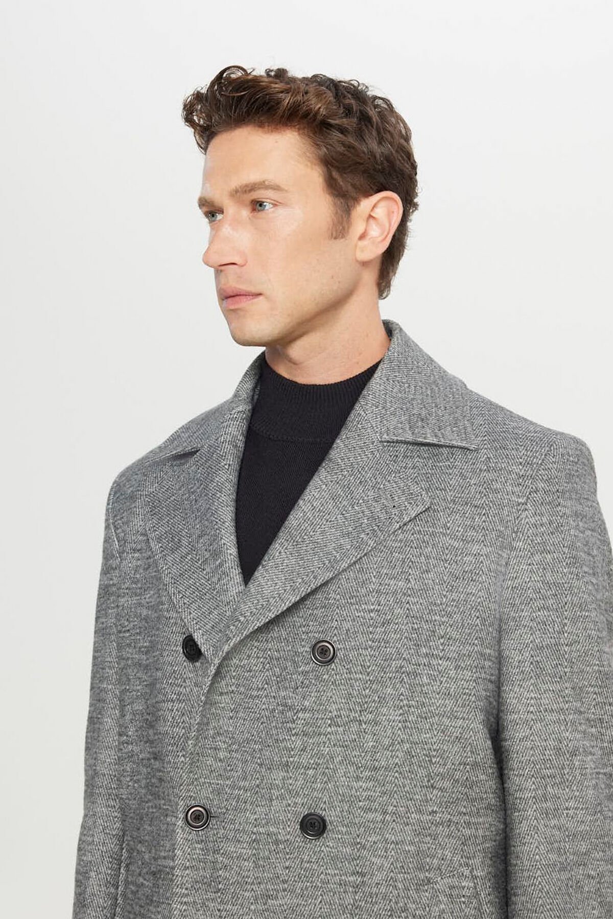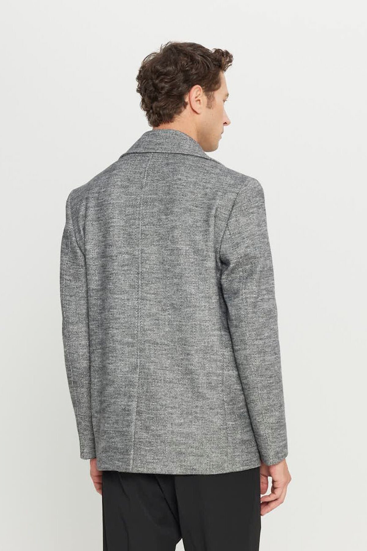 Altınyıldız ACE007261087 Antrasit Erkek Kaşe Standart Fit Normal Kesim Mono Yaka Balıksırtı Desenli Yan Cepli Kaban