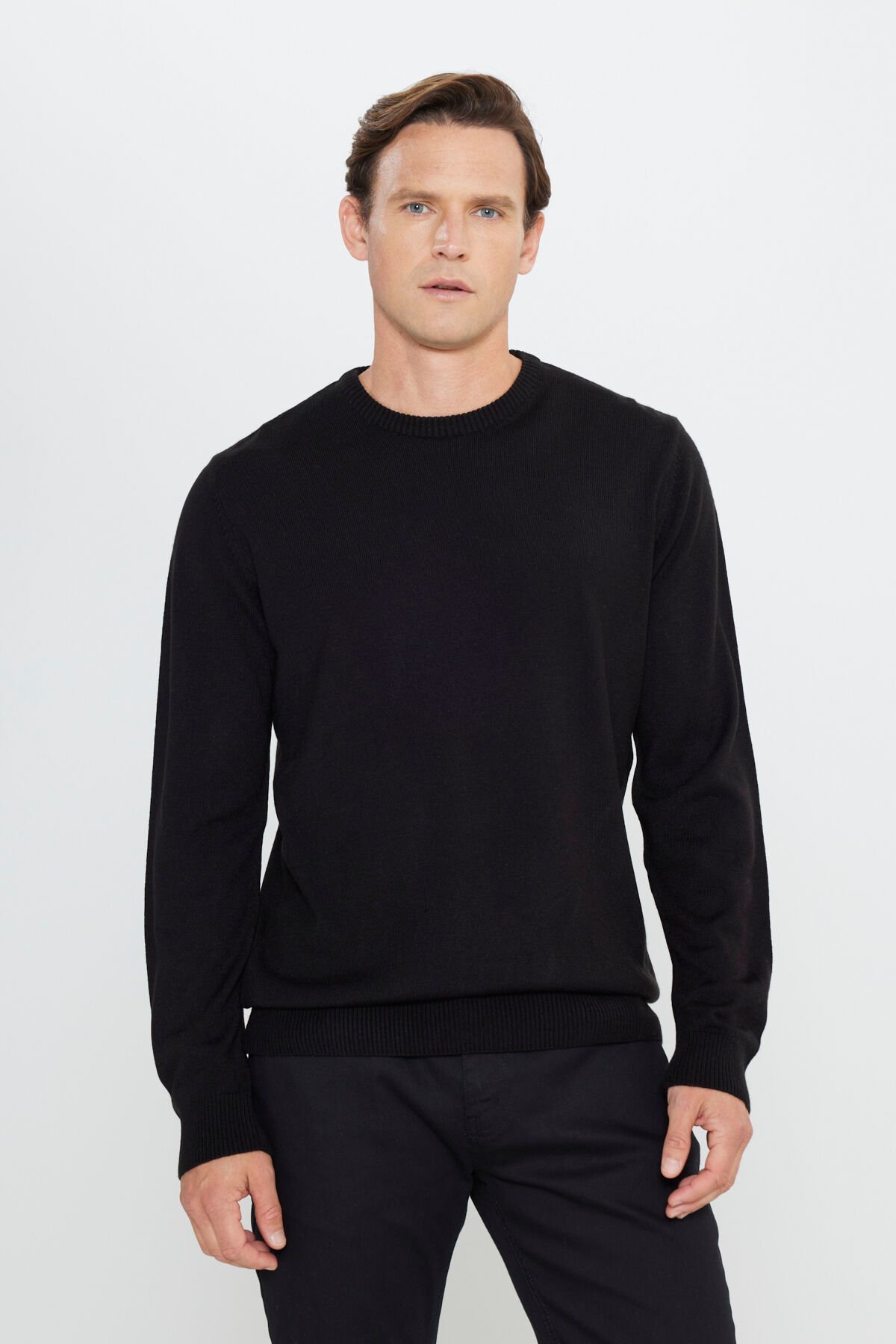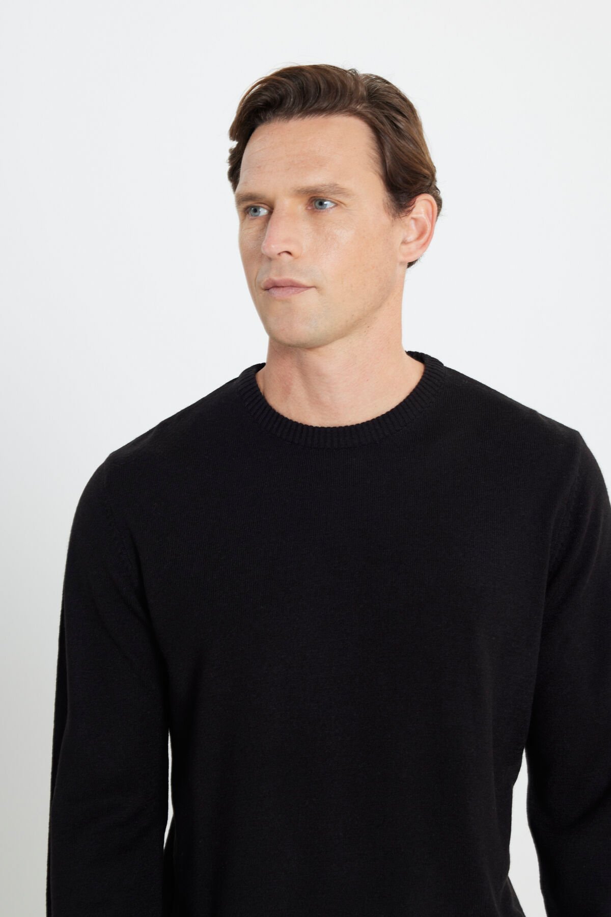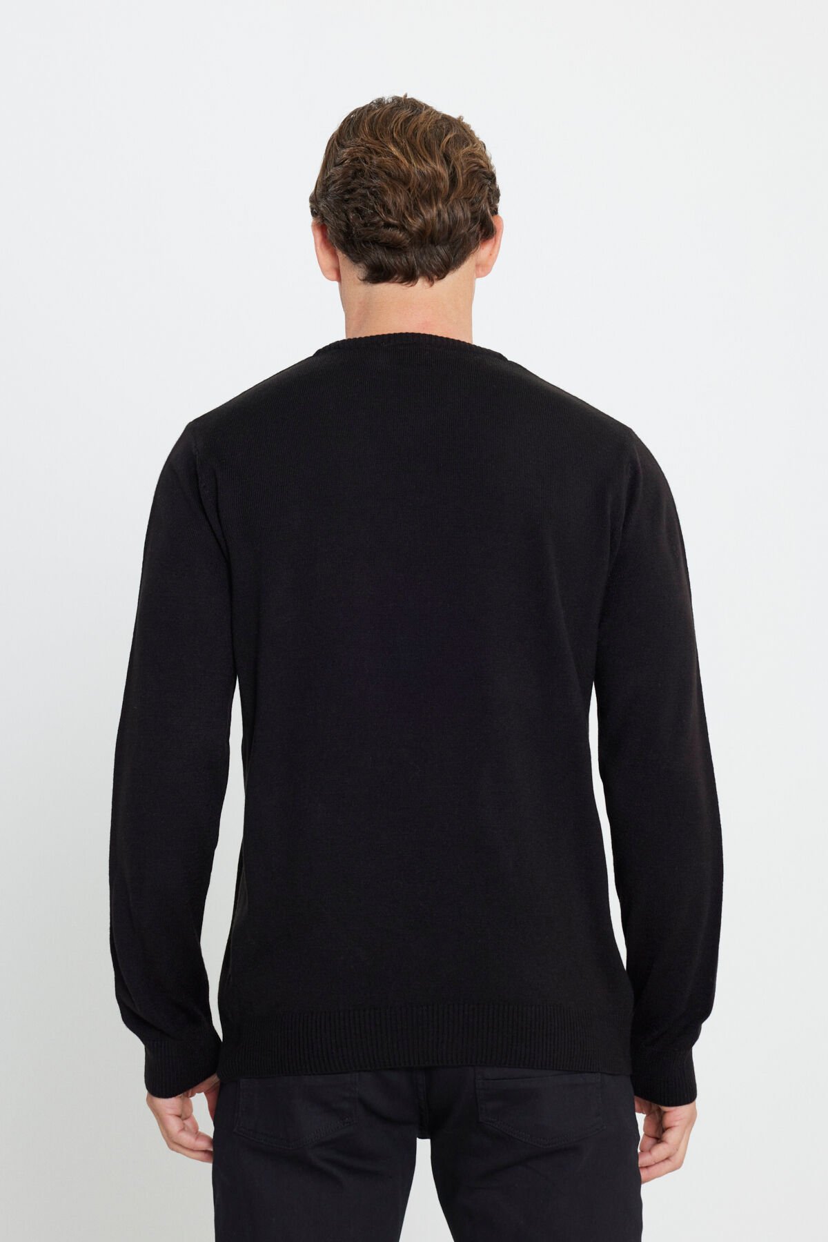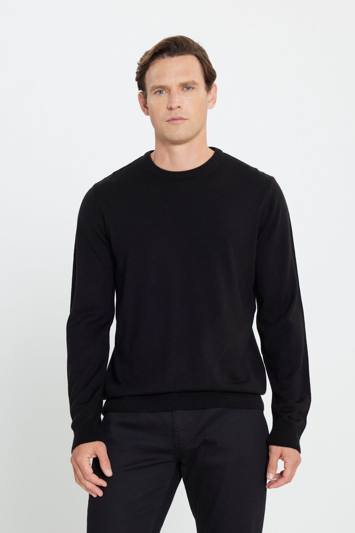 %100 Akrilik Düz Standart Fit Bisiklet Yaka Uzun Kol Astarsız Yırtmaçsız Cepsiz