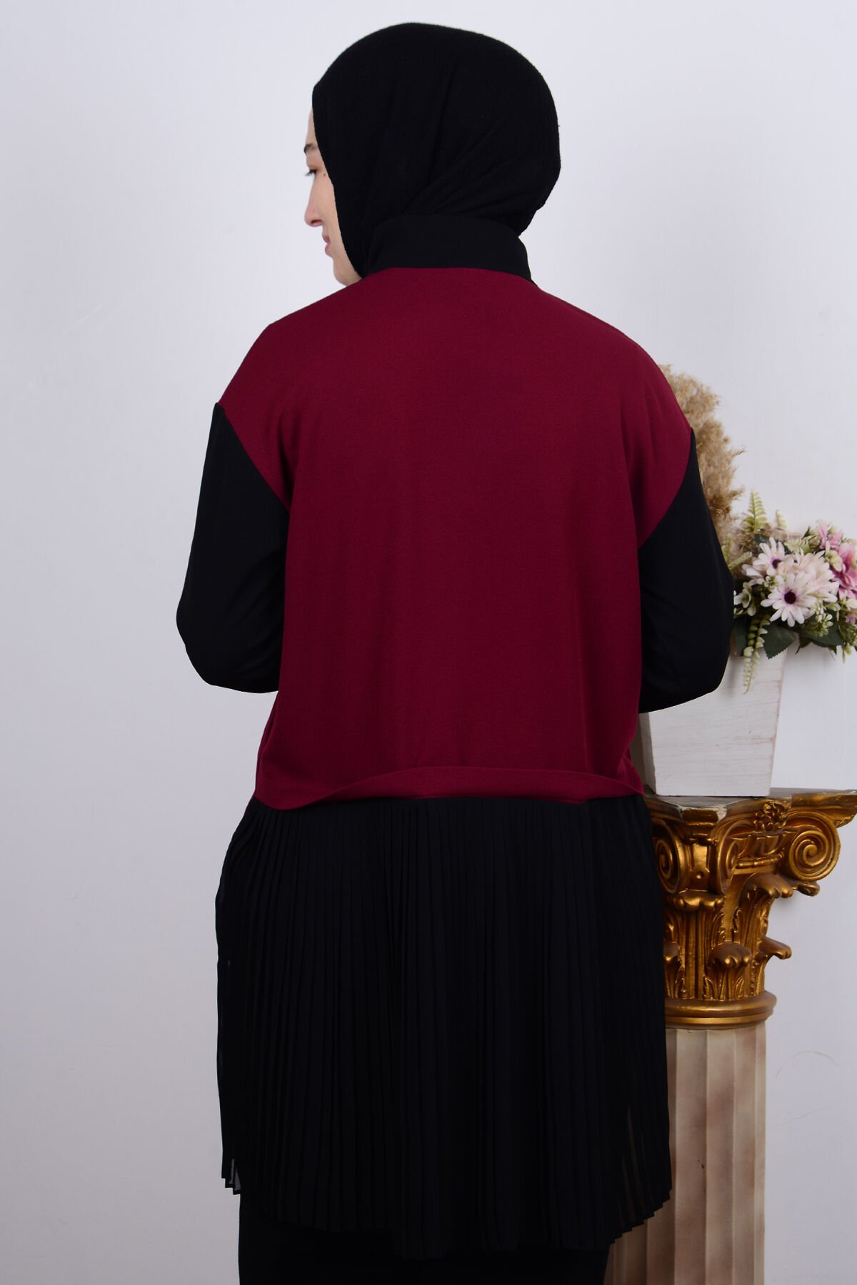 Armine 23KT448 Bordo Kadın Fırfırlı Yarı Fermuarlı Kadın Tunik