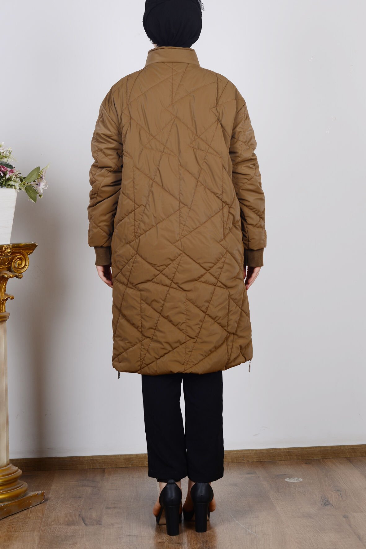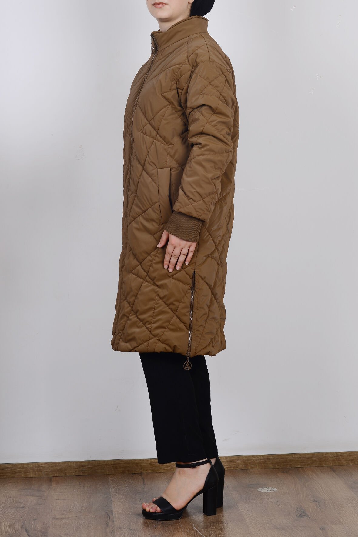 Model: Uzun boy, fermuarlı, kapitone mont