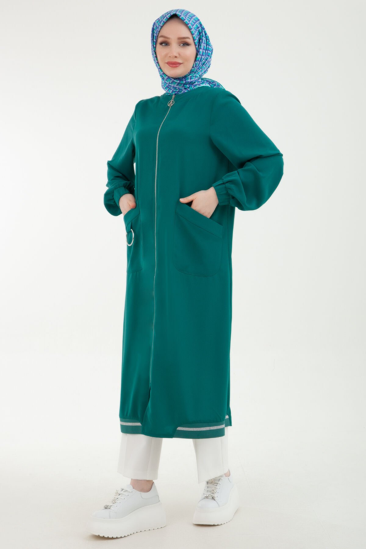 Armine 24YT546 Zümrüt Kadın Kolları Lastikli Cepli Fermuarlı Giy Çık Tunik
