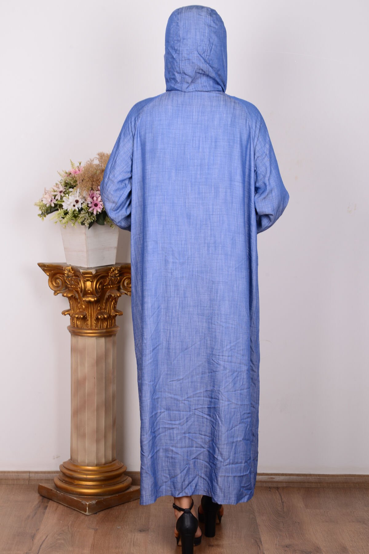 Armine 24YT564 İndigo Kadın Kapişonlu Derin Cep Detaylı Boydan Fermuarlı Kolları Lastikli Giyçık