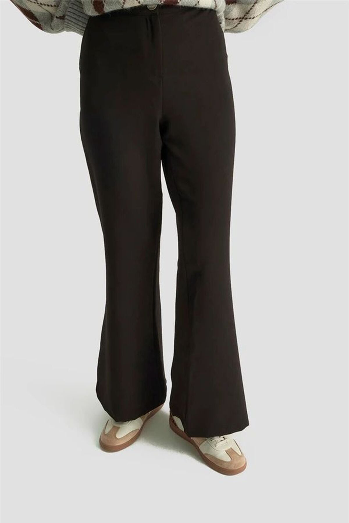 Akıcı silüeti ve kusursuz düşen flare formuyla öne çıkan bu pantolon, esnek dokusuyla gün boyu konfor sunarken şık bir duruş sağlar. Sade çizgisi sayesinde gardırobun zamansız parçalarıyla uyum içinde, modern ve sofistike bir görünüm sağlar.
