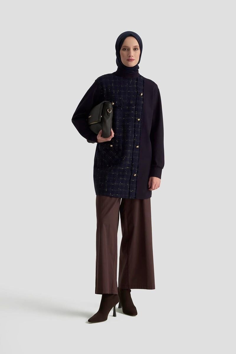 ARMİNE TREND Gold Düğme Detaylı Fermuarlı Tunik Siyah 25KT415 Ceket önden yarı tüvittir, önünde 2 cep bulunmaktır biri kapalı diğeri açık şekildedir, gold düğmeleri vardır, arkadan fermuarlı kumaşı ; iki iplik Ürün Özellikleri BEDEN BOY GÖĞÜS BASEN 38 80 108 114 40 80 112 118 42 80 116 122 44 80 120 126