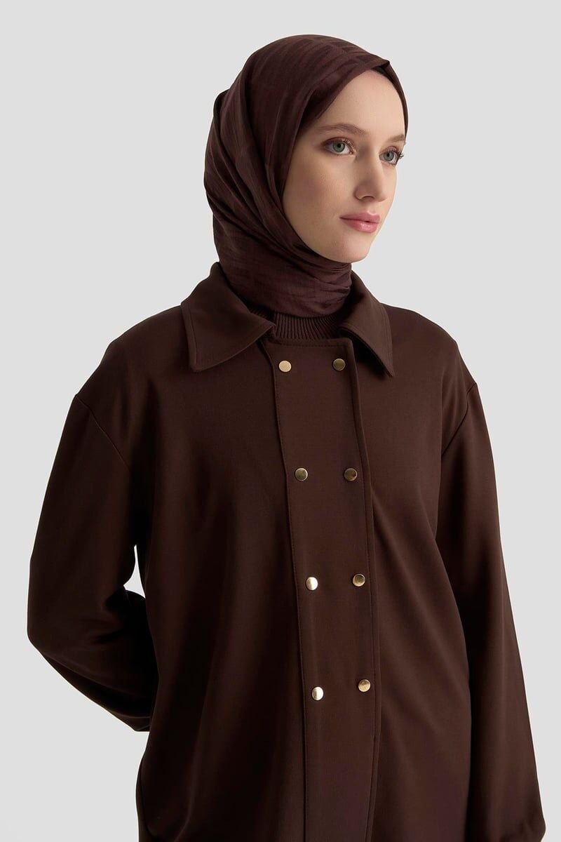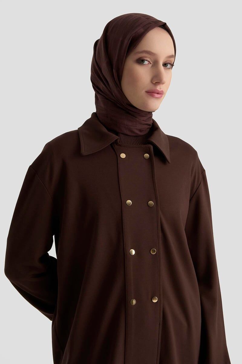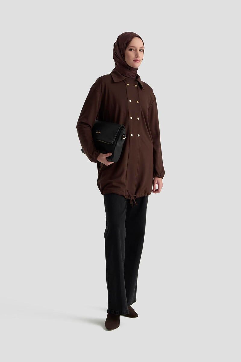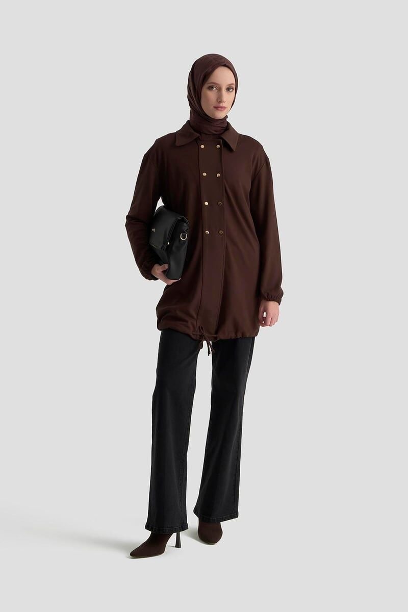 Armine TREND Çift Düğme Detay 2 İplik Tunik Kahverengi 25KT422