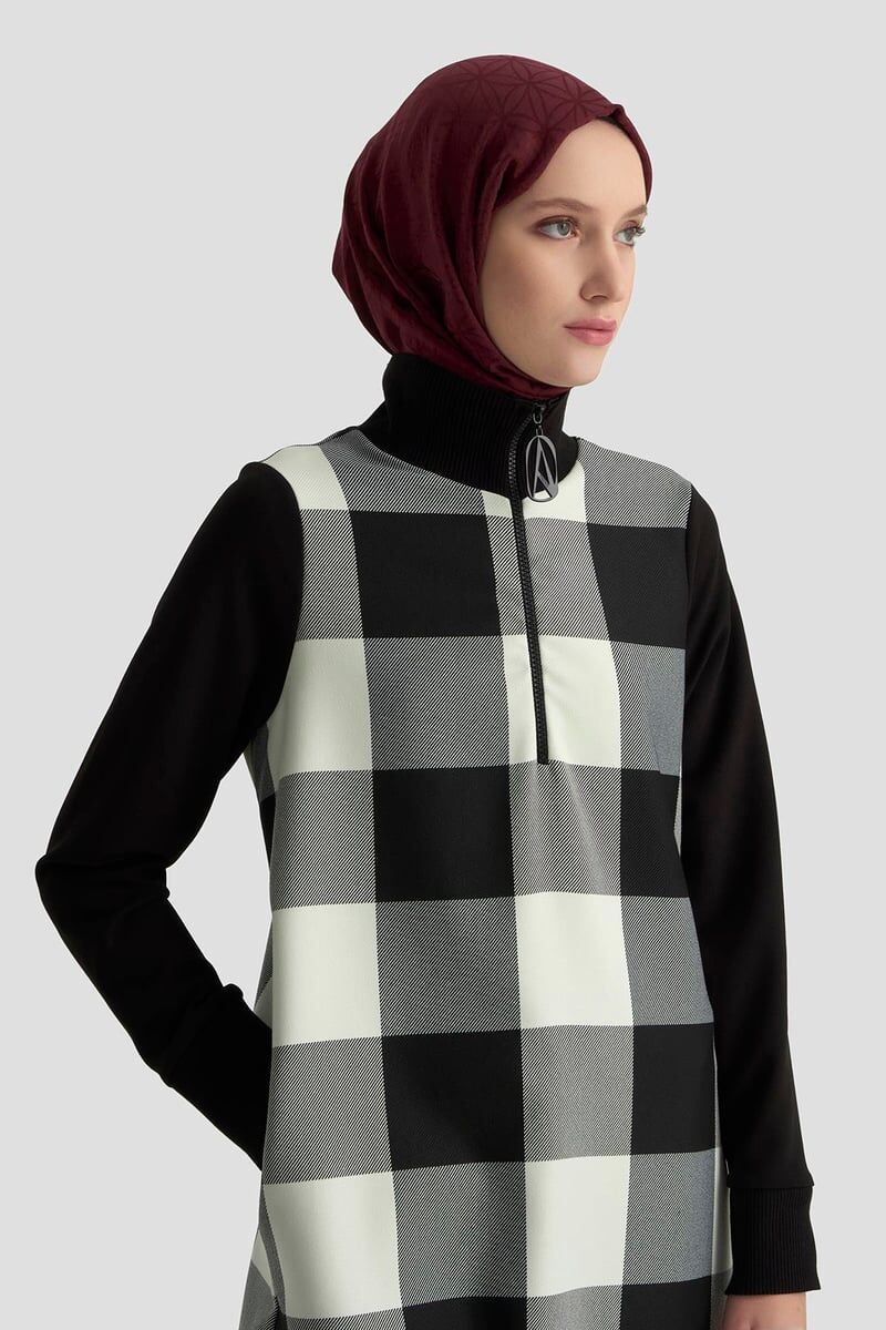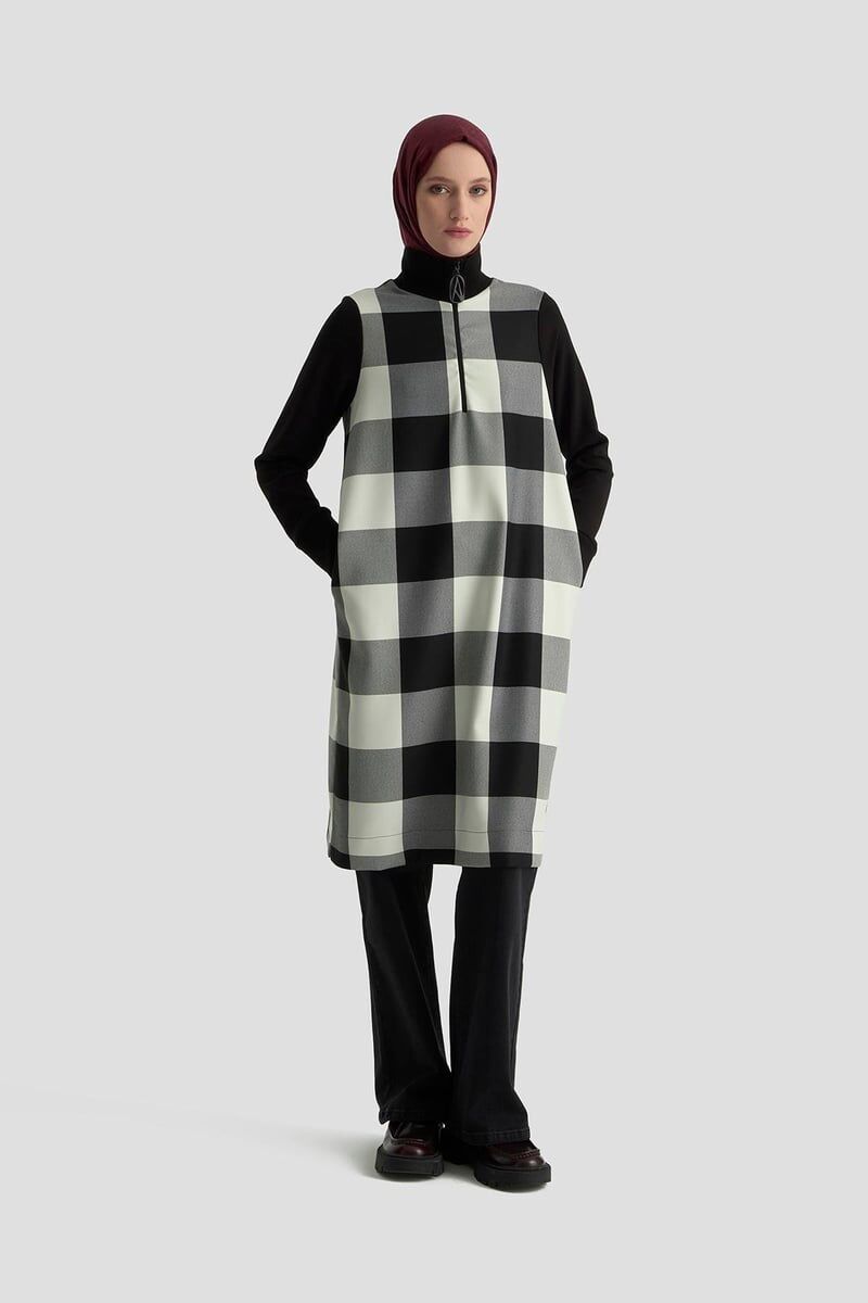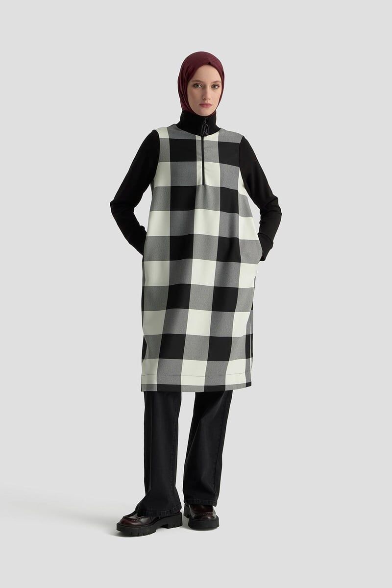 Armine 25KT441 Siyah Kadın Yarım Fermuarlı Balıkçı Yaka Tunik Siyah-beyaz ekose desenli, yarım fermuarlı balıkçı yaka tunik. Balıkçı yaka, yarım fermuarlı Uzun ve rahat kesim Siyah-beyaz kare desenli tasarım Günlük ve şık kombinlere uygun Zamansız şıklık ve modern rahatlık bir arada! Armine 25KT441 Siyah Kadın Yarım Fermuarlı Balıkçı Yaka Tunik, şık ekose deseni ve uzun kesimiyle her kombine uyum sağlıyor. Günlük hayatta konfor, İş hayatında zarafet, Özel günlerde modern bir stil