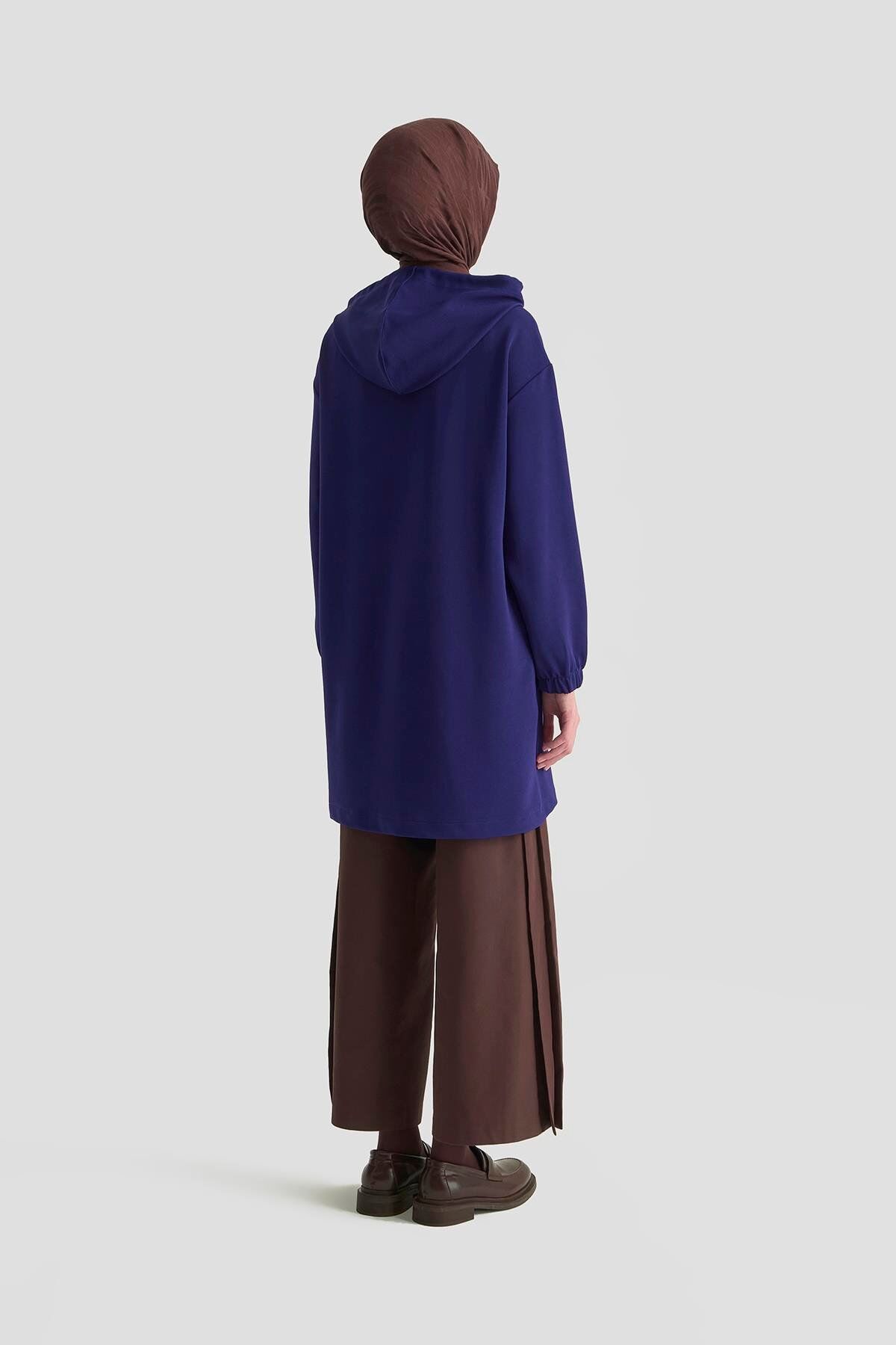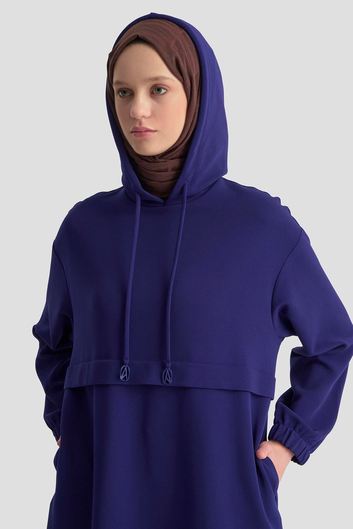 Armine 25KT462 Lacivert Kadın Kapüşonlu Yandan Cepli Kolları Lastikli Fitilli Tunik