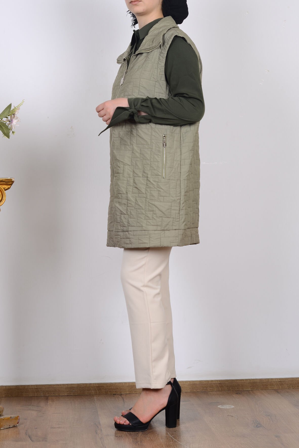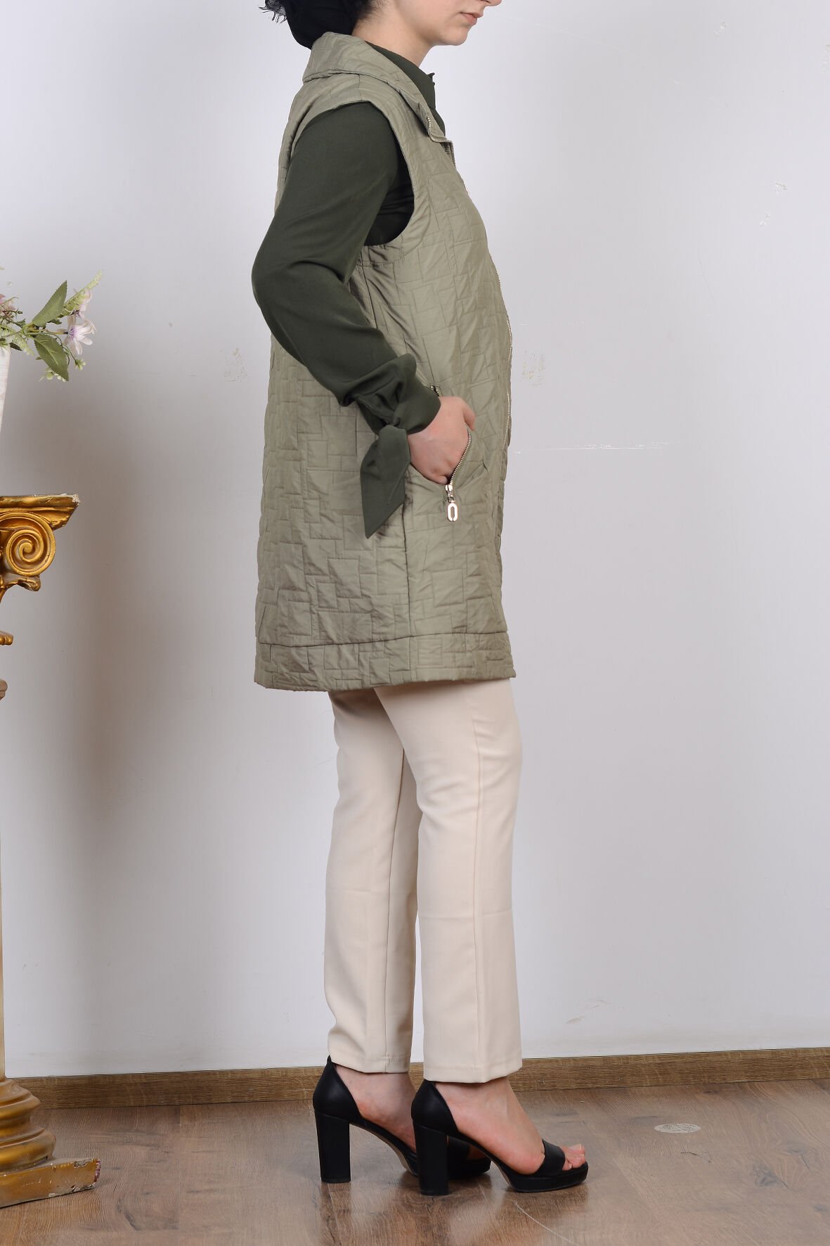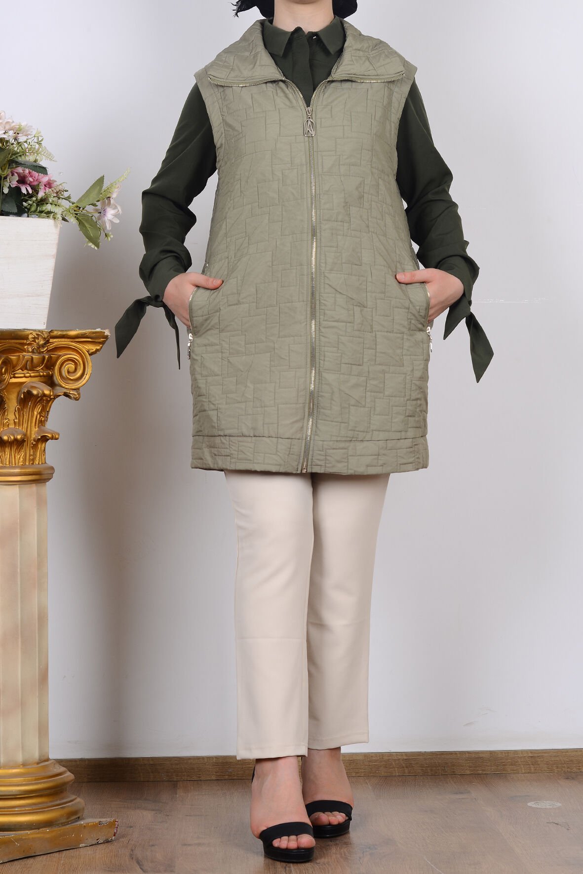 Ürün Adı: Armine 25KT535 Haki Kadın Sıfır Kol Cep Detaylı Yelek Ürün Özellikleri: Renk: Haki Model: Sıfır kol, fermuarlı, yelek Kumaş Özelliği: Hafif, rahat ve nefes alabilir dokusu ile gün boyu konfor sağlar Detay: Ön kısımda kullanışlı cep detayları Kalıp: Rahat kesim, günlük kullanım için ideal Kullanım Alanı: Günlük kombinlerde, dış giyim olarak veya tunik/elbise üzerine rahatça giyilebilir Mevsim: İlkbahar, sonbahar ve serin yaz akşamlarında kullanılmaya uygundur Tarz: Modern, şık ve sade tasarım Öne Çıkan Avantajlar: Şık ve minimalist görünümü ile hem spor hem klasik kombinlere uyum sağlar. Fermuarlı yapısı pratik kullanım kolaylığı sunar. Cepleri sayesinde fonksiyonel kullanım imkânı verir. Hafif yapısı sayesinde gün boyu rahatlık sağlar.