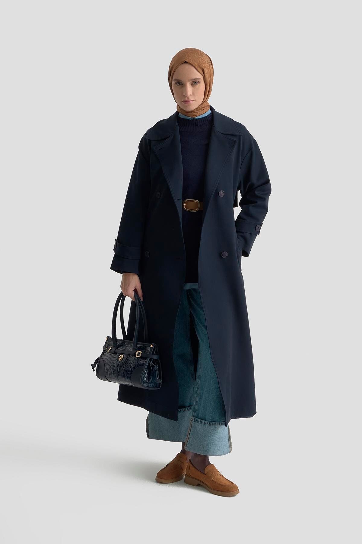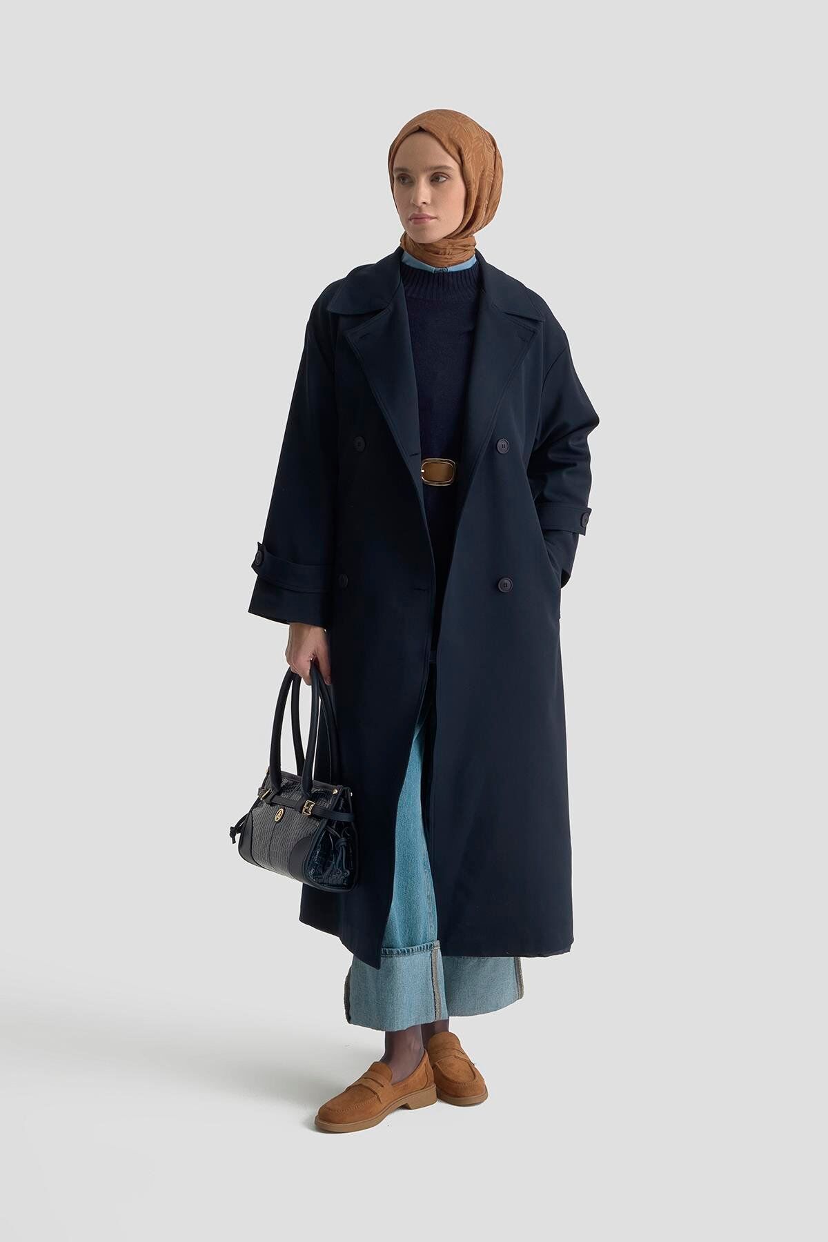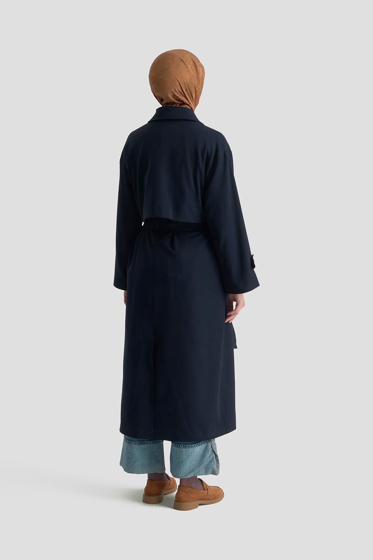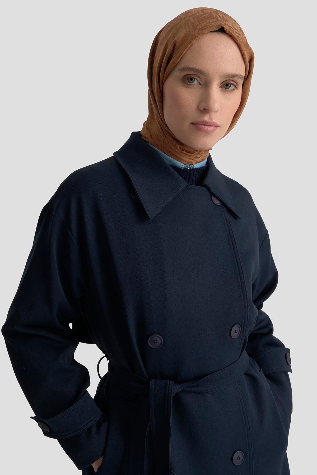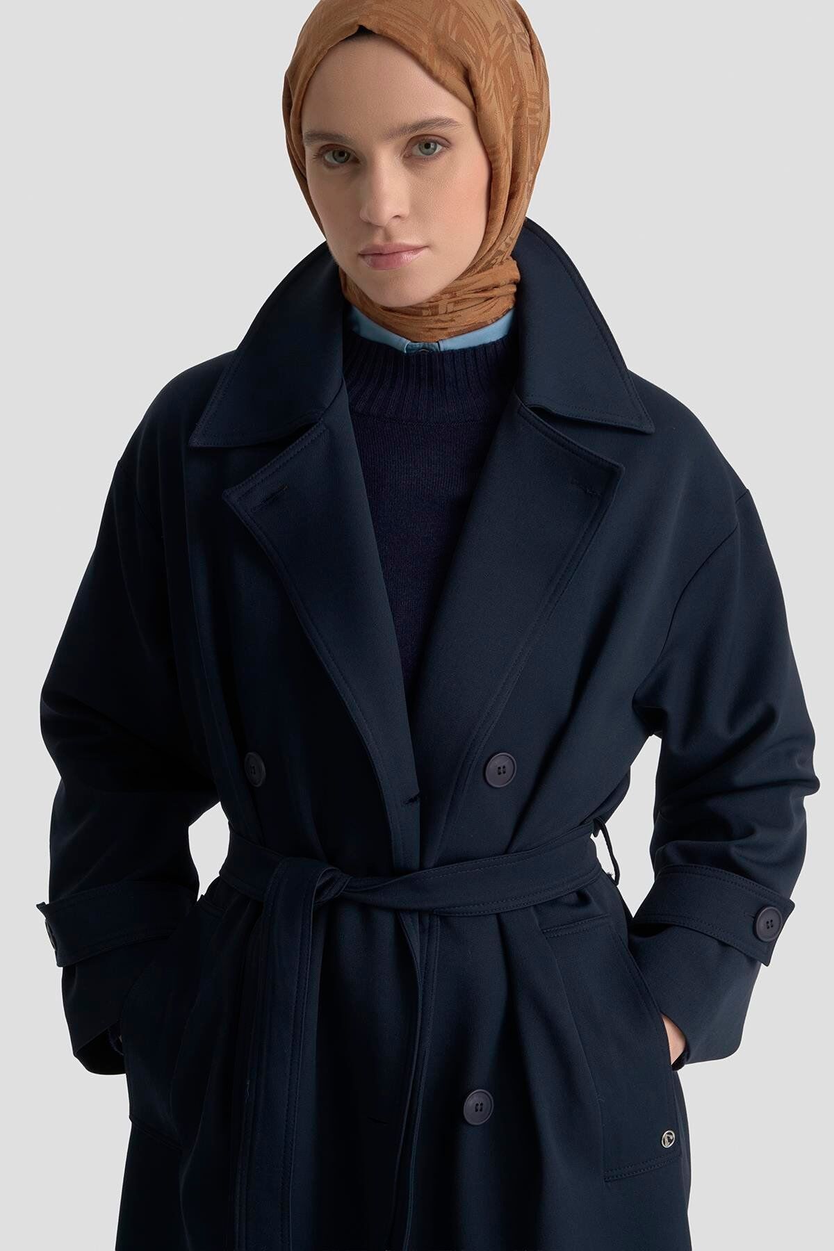 Armine TrendDüğmeli Cepli Kemerli Trençkot Lacivert 25KT802