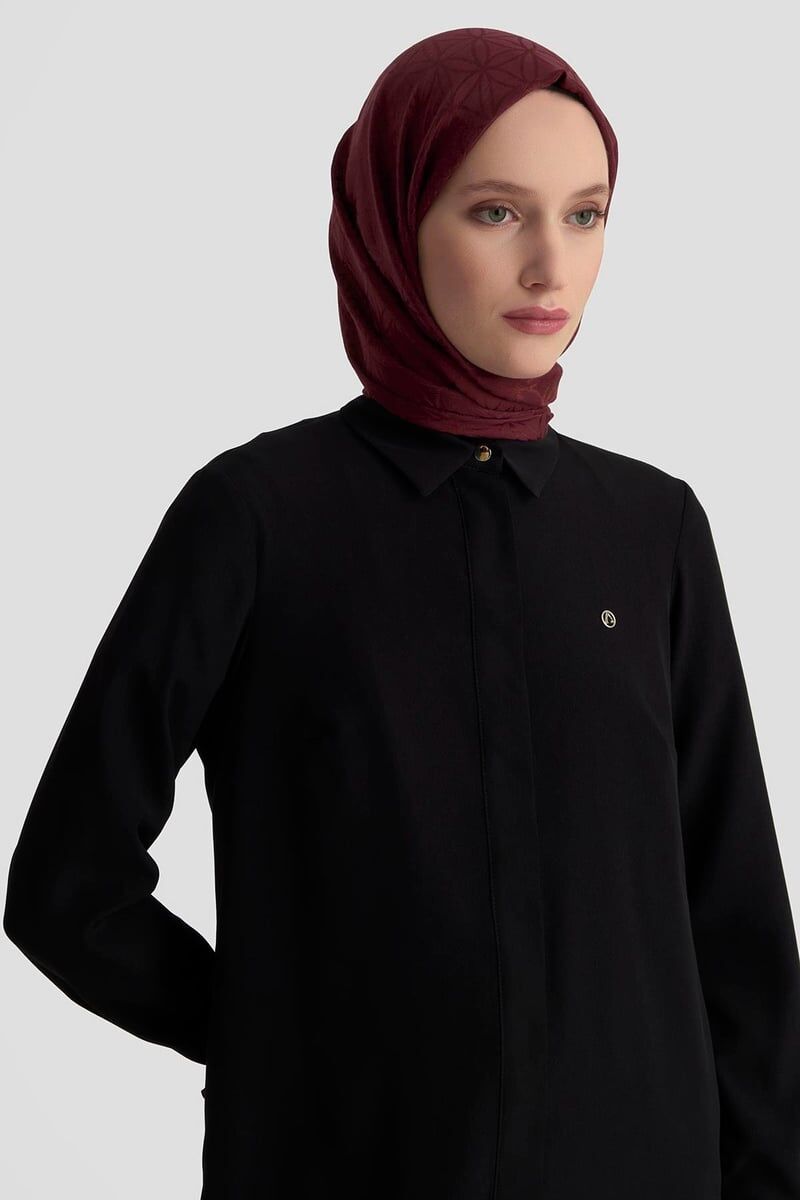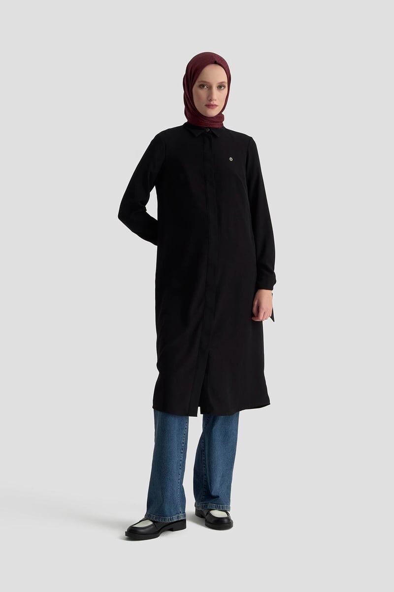 Armine 25YT4158 Siyah Kadın Gizli Düğmeli Gömlek Tunik