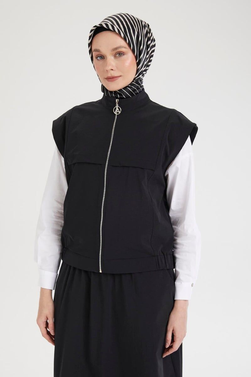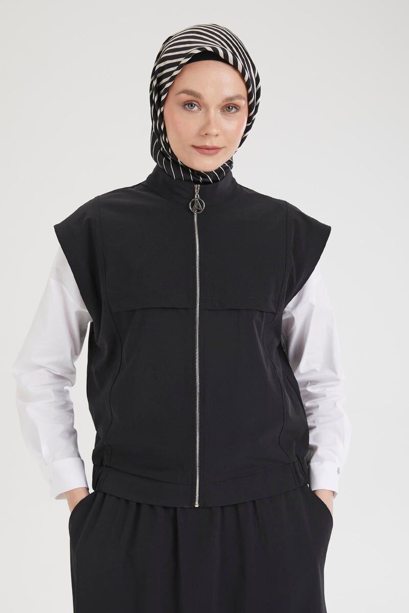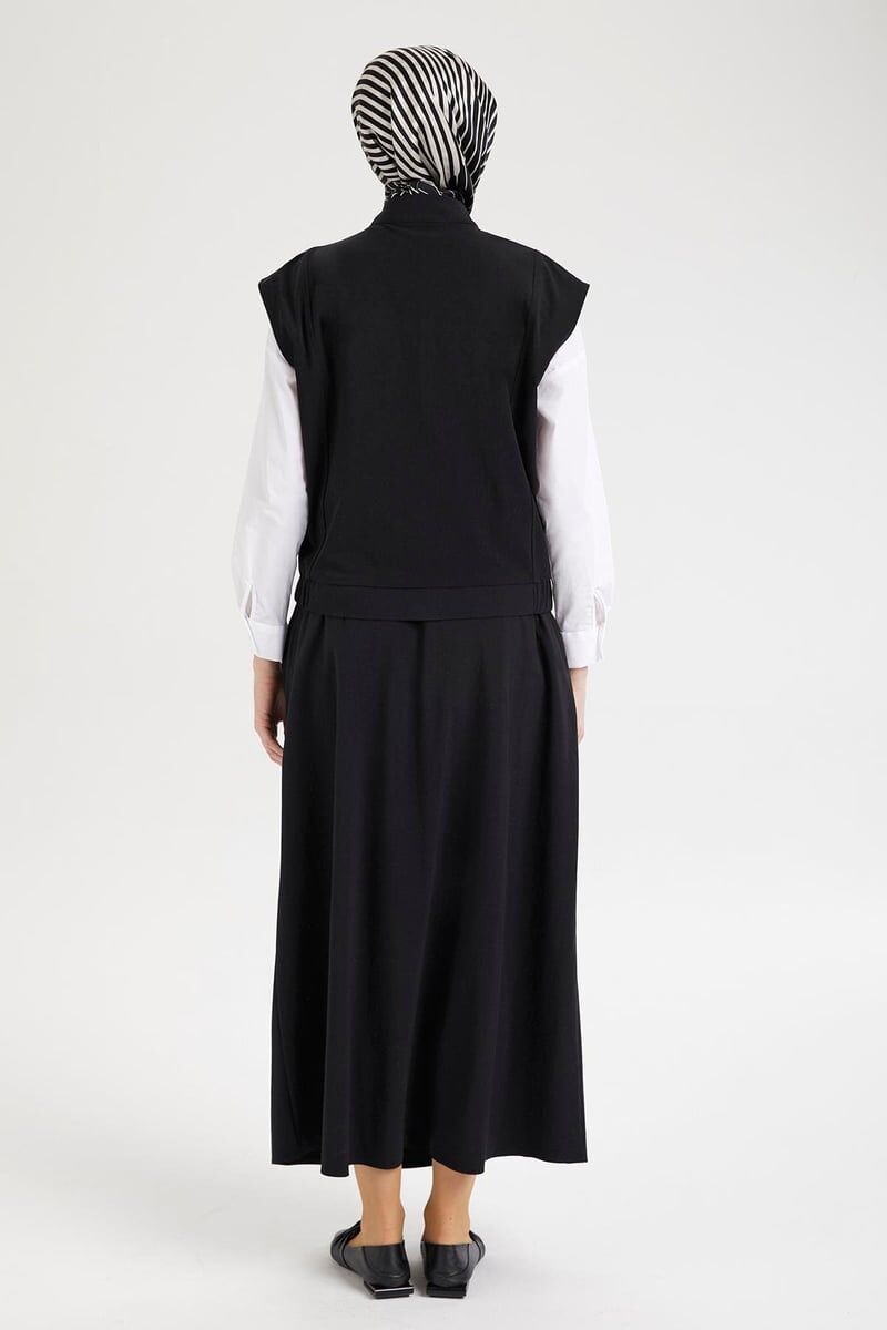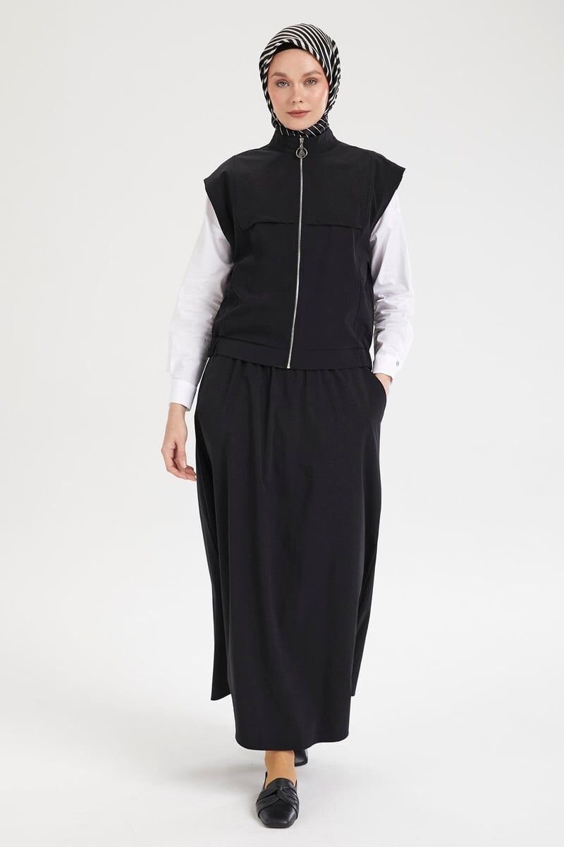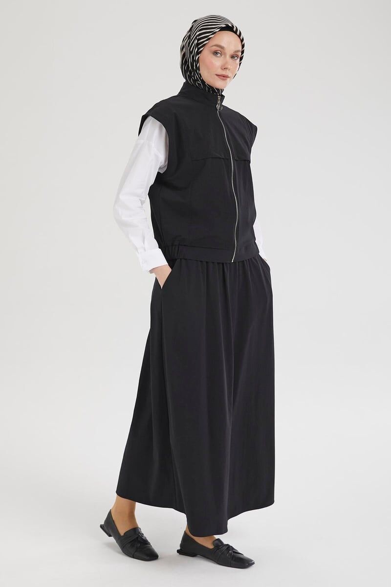 Detay: Sıfır kol, cepli, fermuar kapamalı, etek ucu lastikli yelek, lastikli bel, cepli, paraşüt kumaş etek