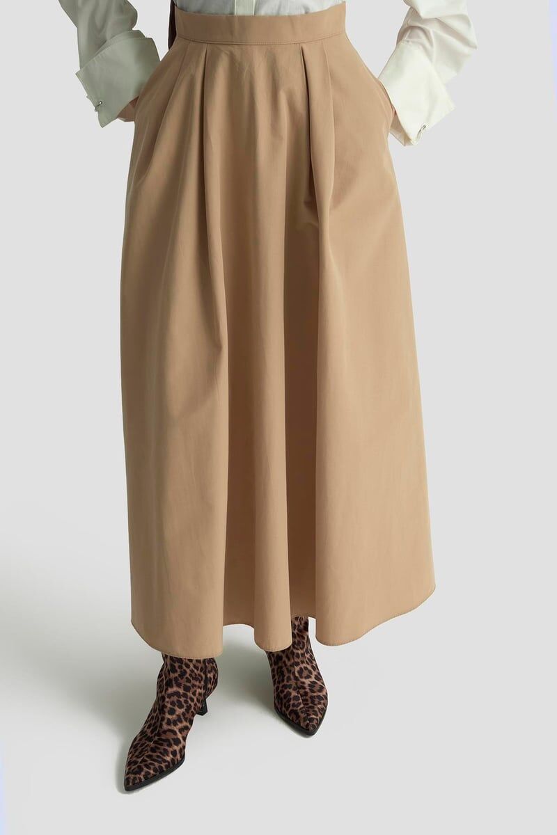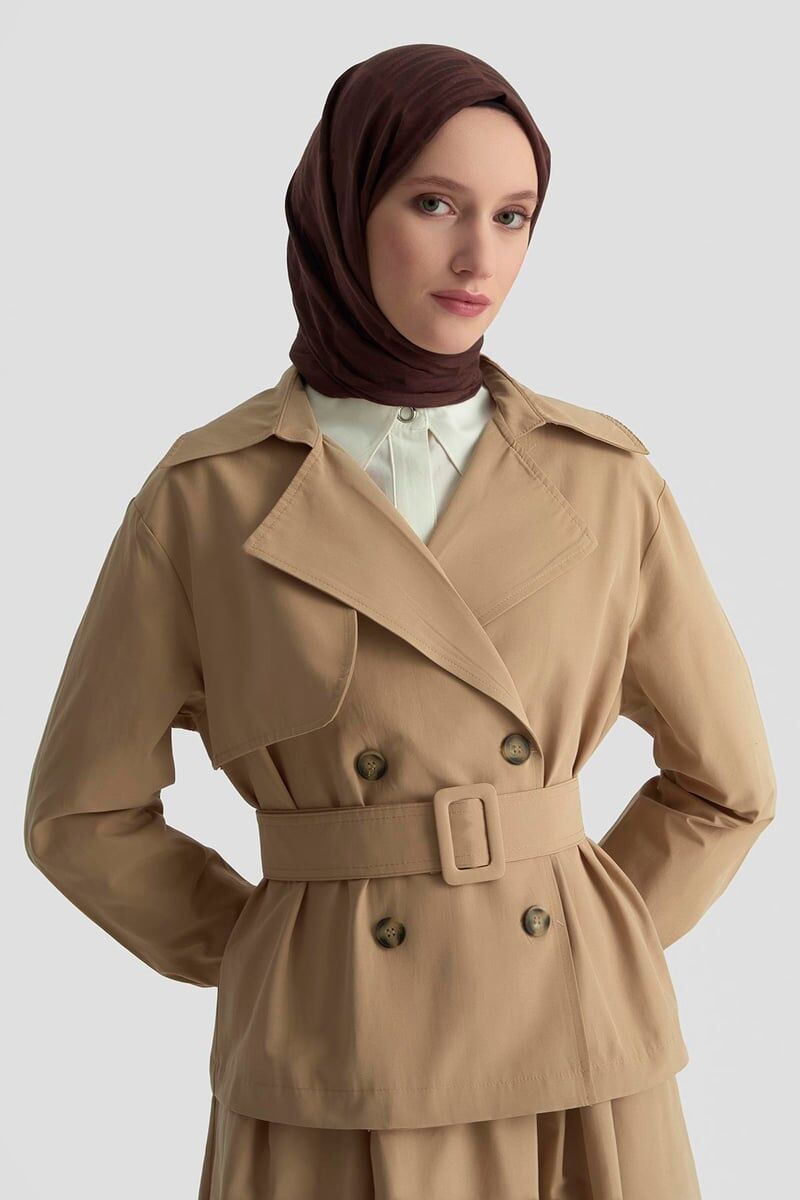 Armine Trend 25 YT619 Bej Takım Görünüm: Üst kısmı, çift düğmeli ve kemer detaylı modern bir ceket olarak tasarlanmış. Alt kısmı ise bol kesim, uzun bir etek şeklinde. Bu kombin, şık ve tesettüre uygun bir görünüm sunuyor. Kumaş: Orta kalınlıkta, bahar ve sonbahar mevsimlerine uygun, kaliteli bir dokuma kumaş kullanılmış. %50 cotton ve %50 polyester karışımıdır. Kesim ve Detaylar: Ceket kısmı belden kemerle vurgulanmış, düğme detayları şık bir görünüm katıyor. Etek kısmı bol kesim, rahat hareket imkânı sağlıyor. Renk: Bej, hem şık hem de doğal bir renk. Bakım: Ürünün uzun ömürlü olması için soğuk suda yıkama ve düşük ısıda ütüleme öneriliyor.