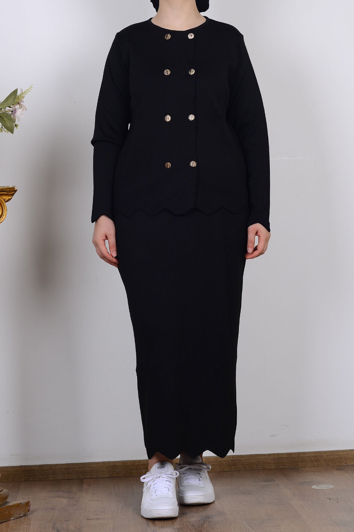 Takım İçeriği: Üst triko bluz + uzun triko etek