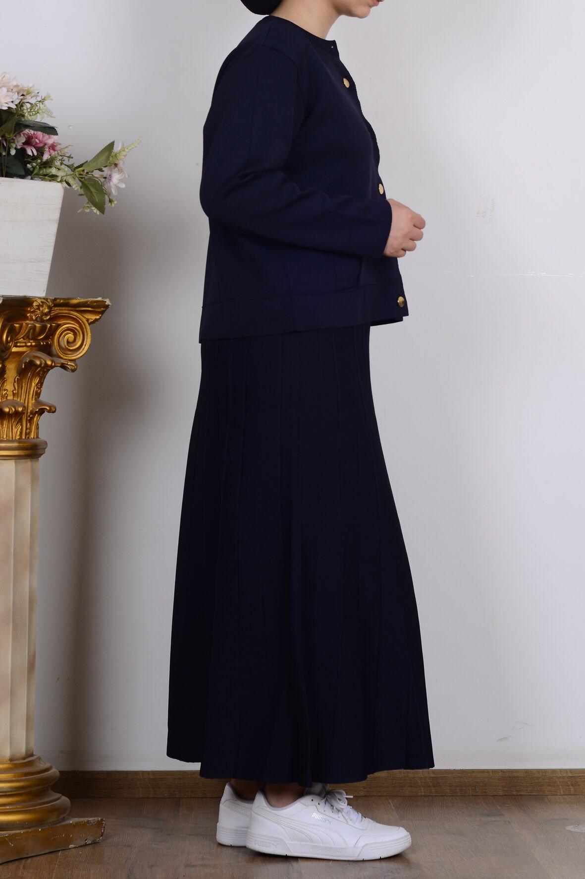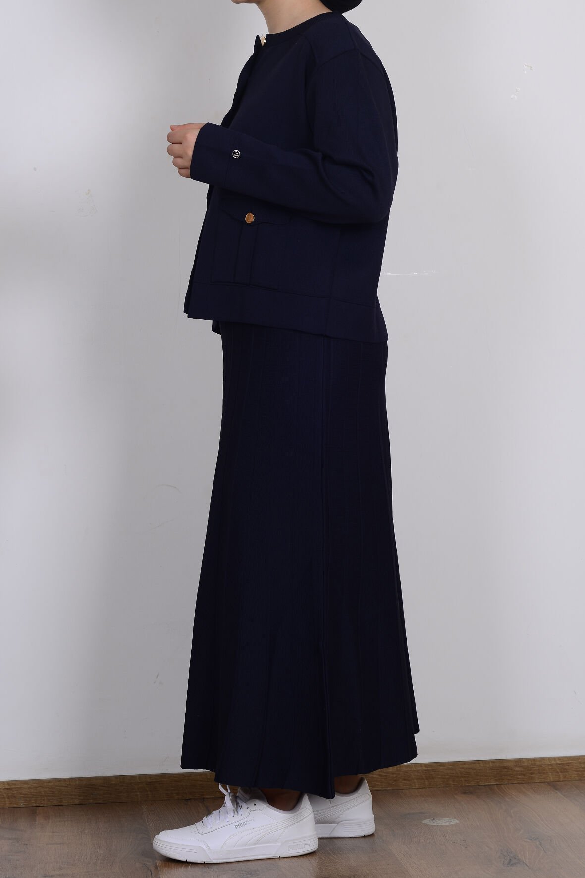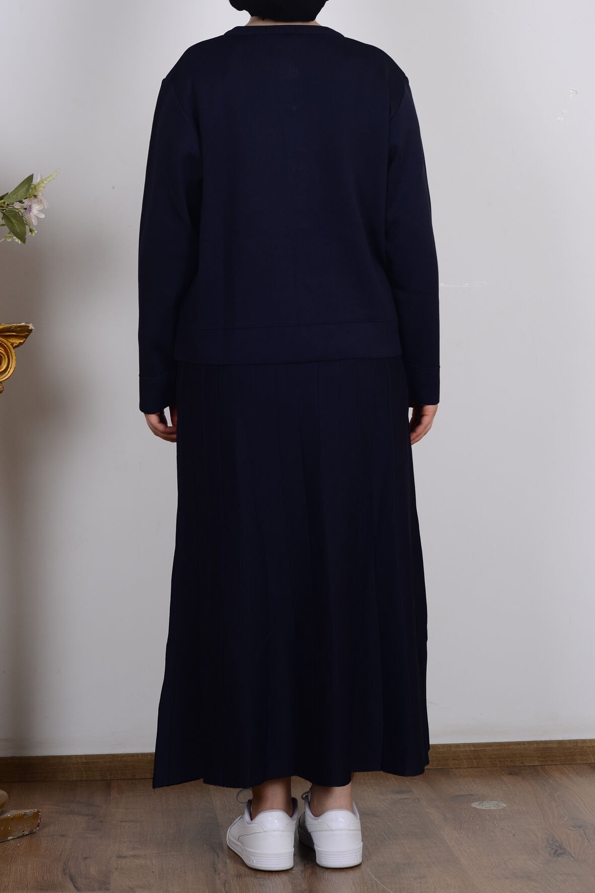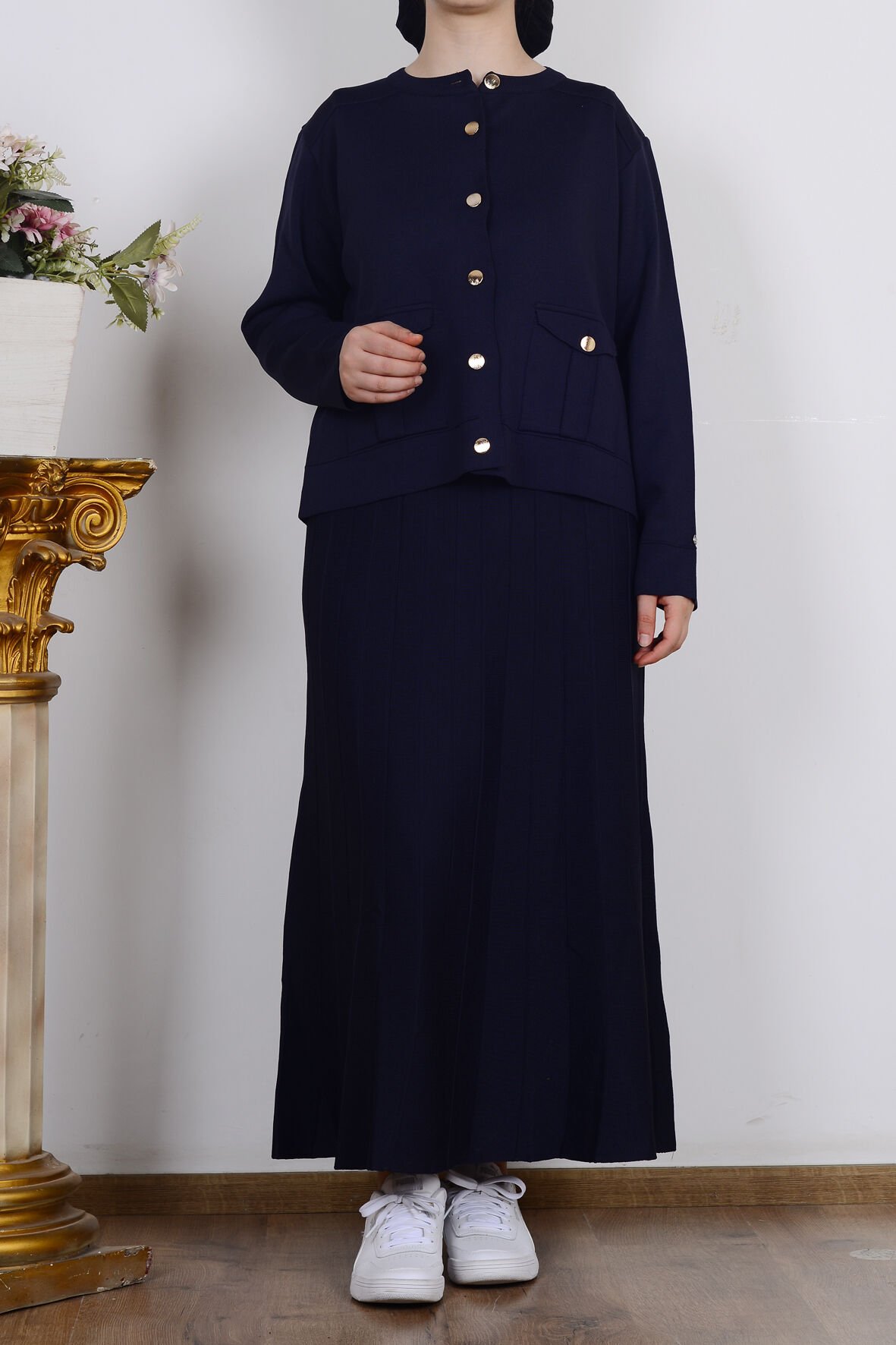 Armine 25YTD6120 Lacverti Kadın Triko Takım, üst kısmında şık cep detayları ve etekli alt kısmıyla modern ve zarif bir görünüm sunar. Yumuşak triko dokusu, gün boyu konforlu kullanım sağlar. Lacivert rengi sayesinde her kombine uyum sağlayan, hem günlük hem özel kullanım için ideal bir takımdır.