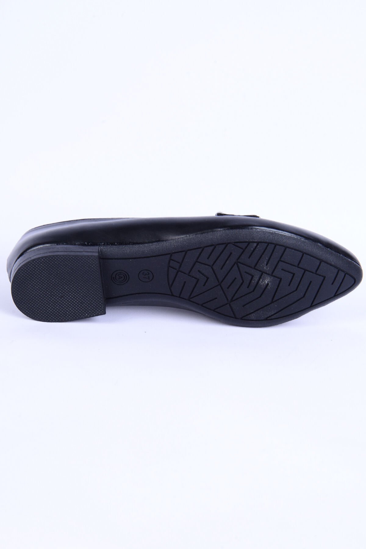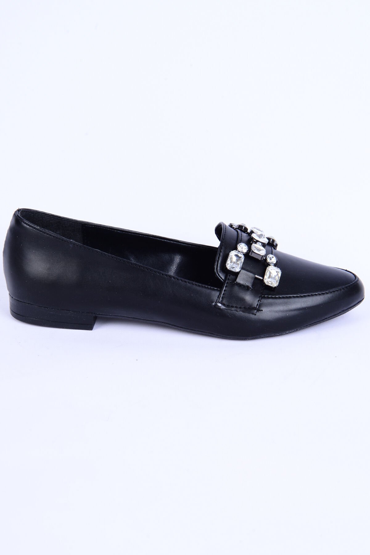 Ayakmod 354132 Z Deri Taş Detaylı Rahat Taban Düz Topuklu Siyah Günlük Kadın Babet
