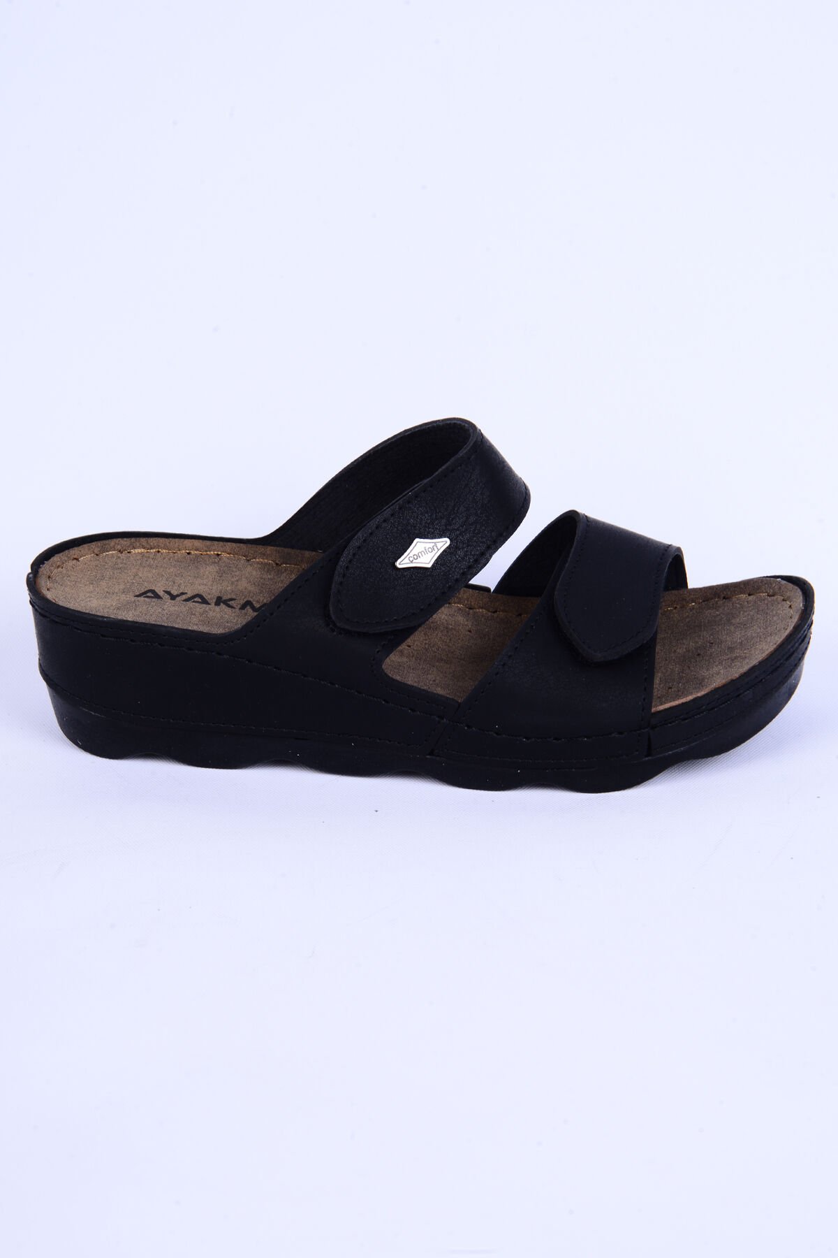 Ayakmod 37-976 Yüksek Taban Cırtcırtlı Rahat Taban Siyah Günlük Kadın Terlik