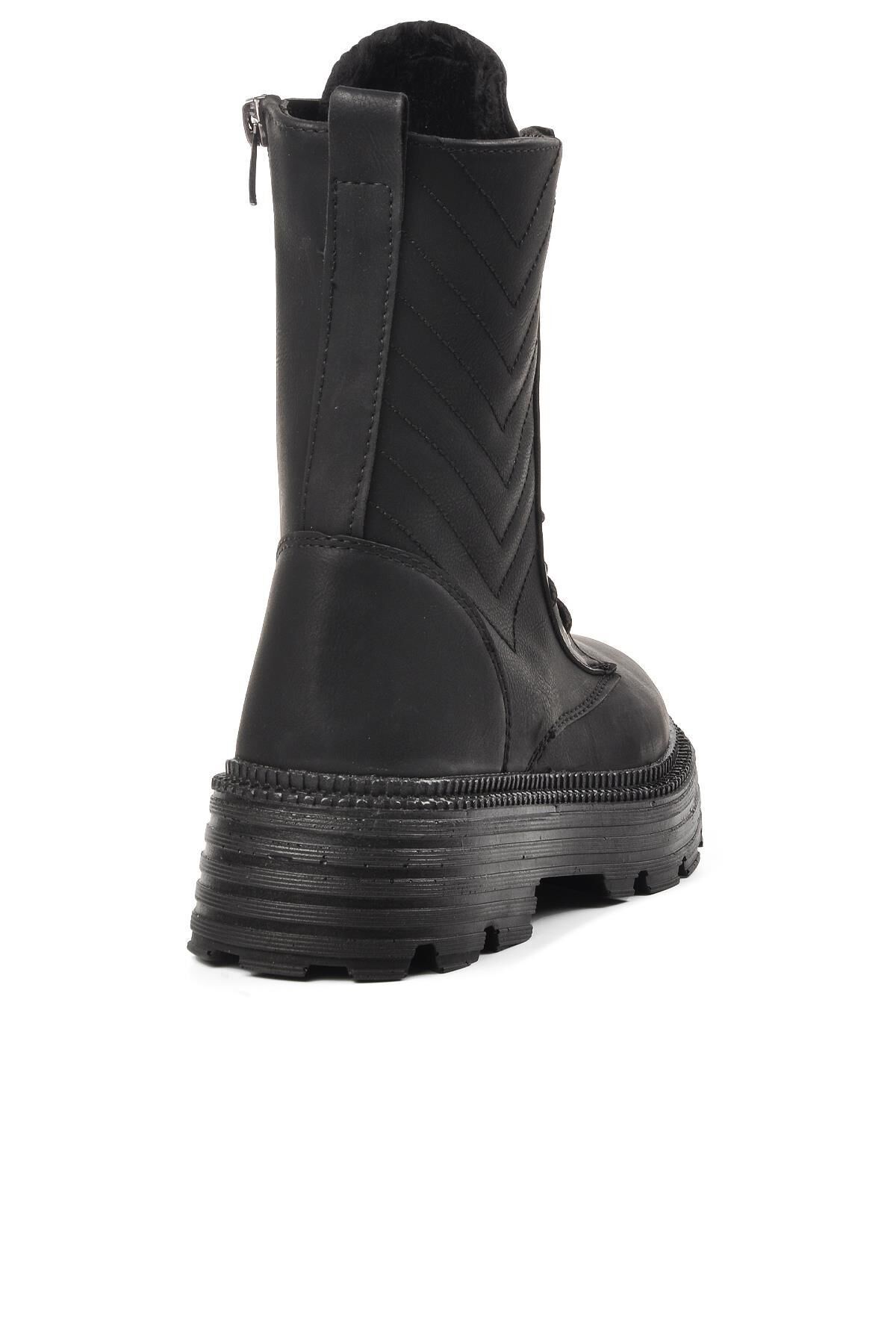Kalıp: Standart Kalıp Dış Materyal: Pü Deri İç Materyal: Kürklü Bağlama Şekli: Bağcıklı - Fermuar Topuk Yüksekliği: 4,5 cm Bot Uzunluğu: 20,5 cm Taban Malzemesi: Termo Ağırlık: 398 gr