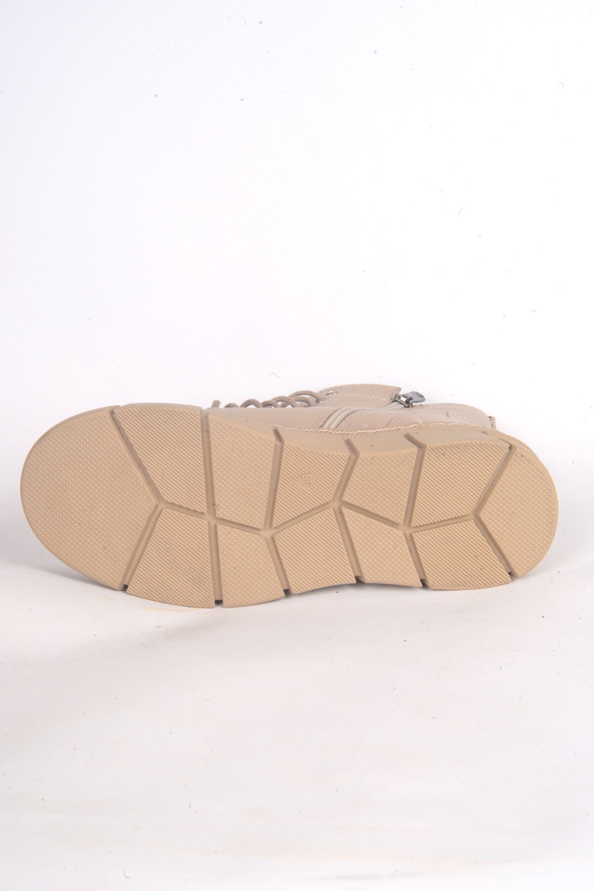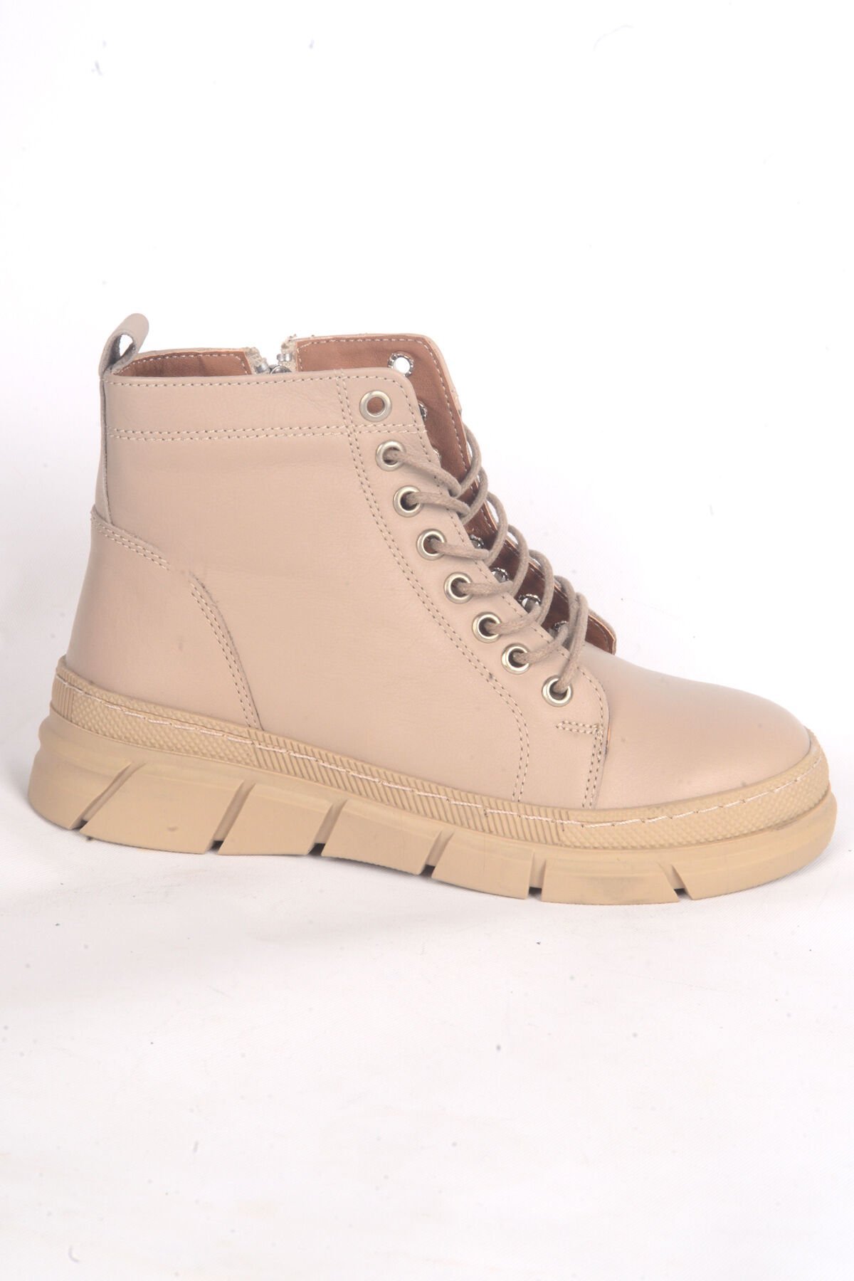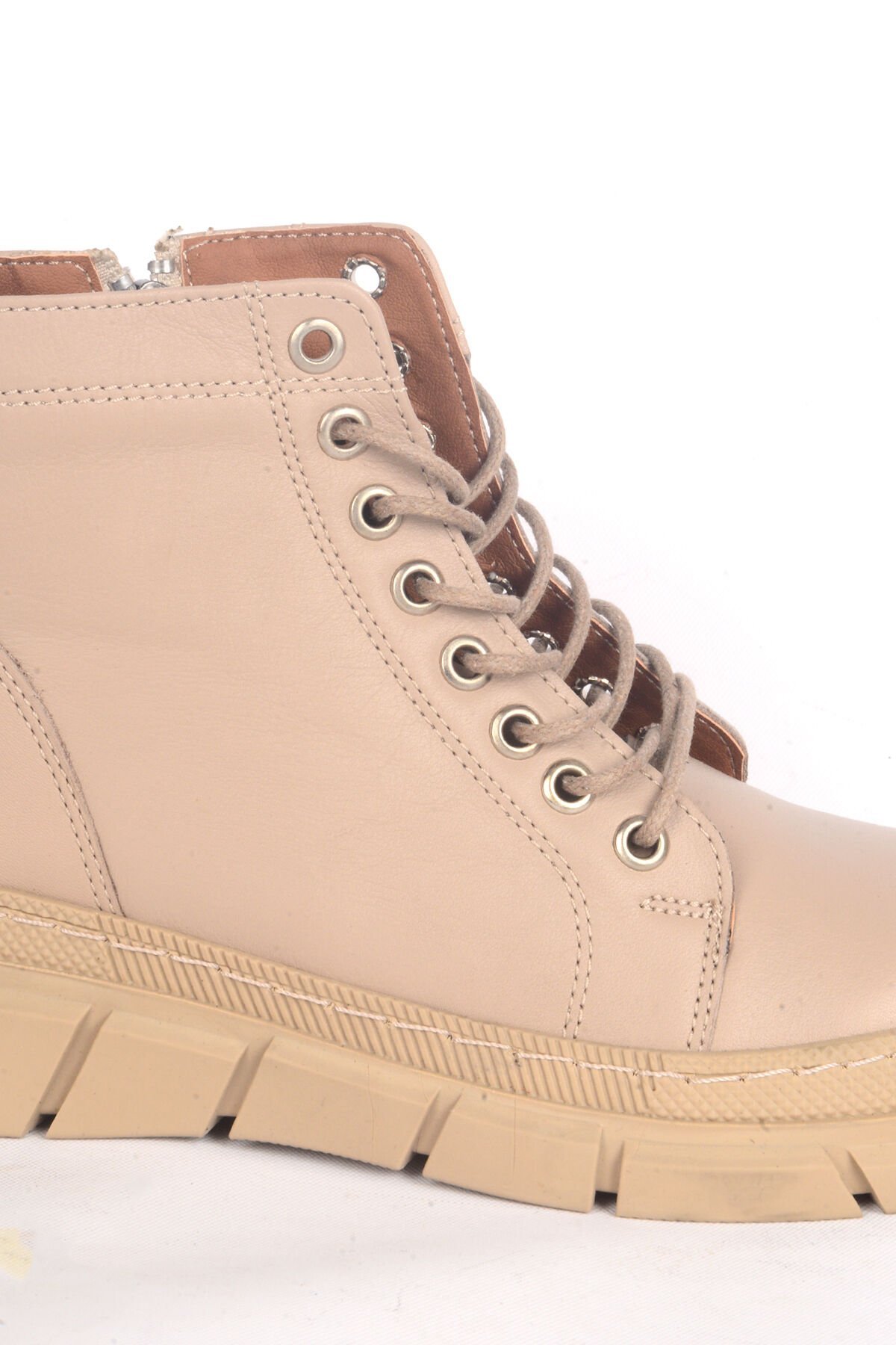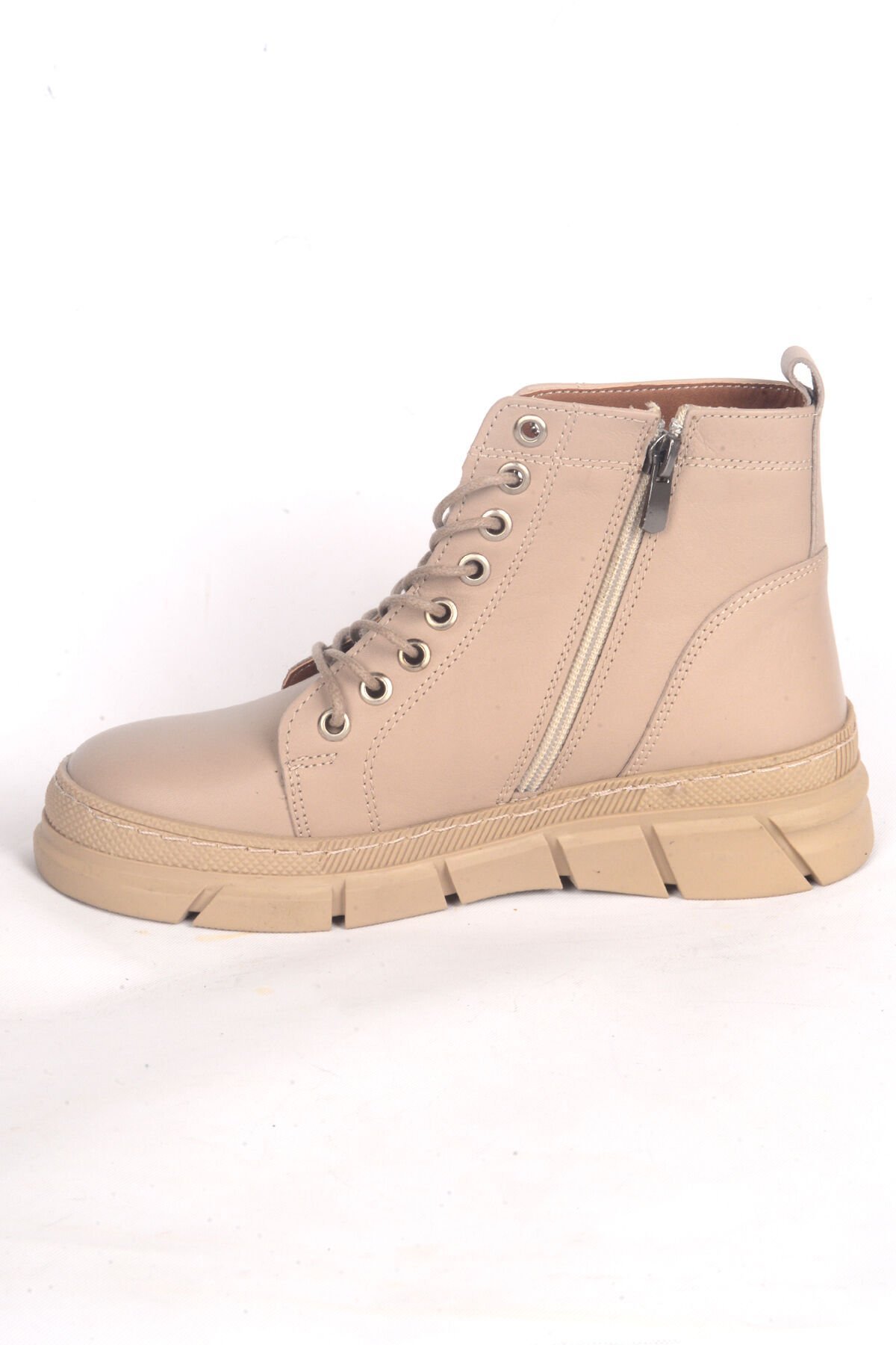 Bulldozer 240631 Deri Ortapedik Tabanlı Yarım Boğazlı Yarım Topuklu Bağcıklı Bej Kadın Kışlık Bot Ayakkabı