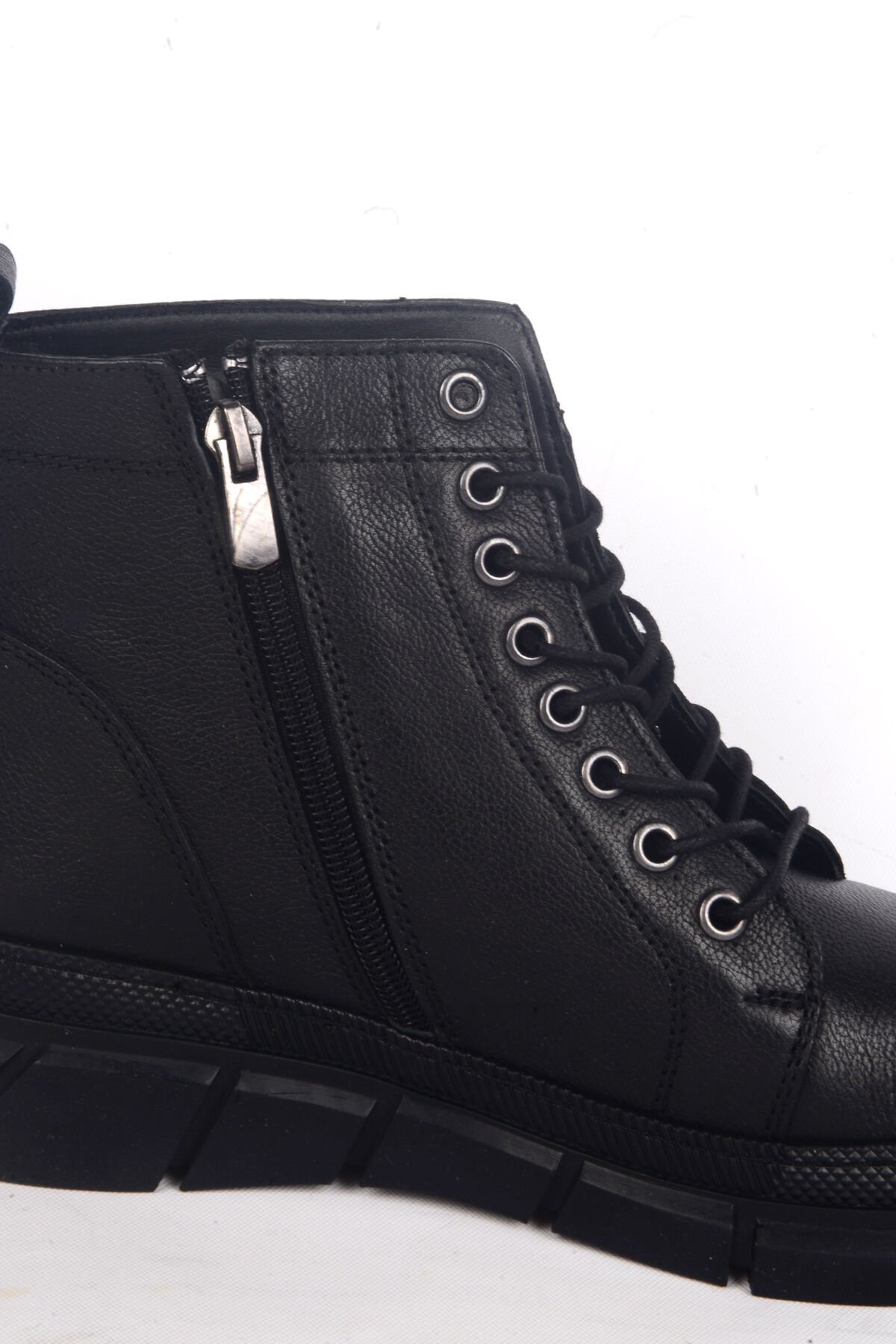 Bulldozer 240631 Deri Ortapedik Tabanlı Yarım Boğazlı Yarım Topuklu Bağcıklı Siyah Kadın Kışlık Bot Ayakkabı