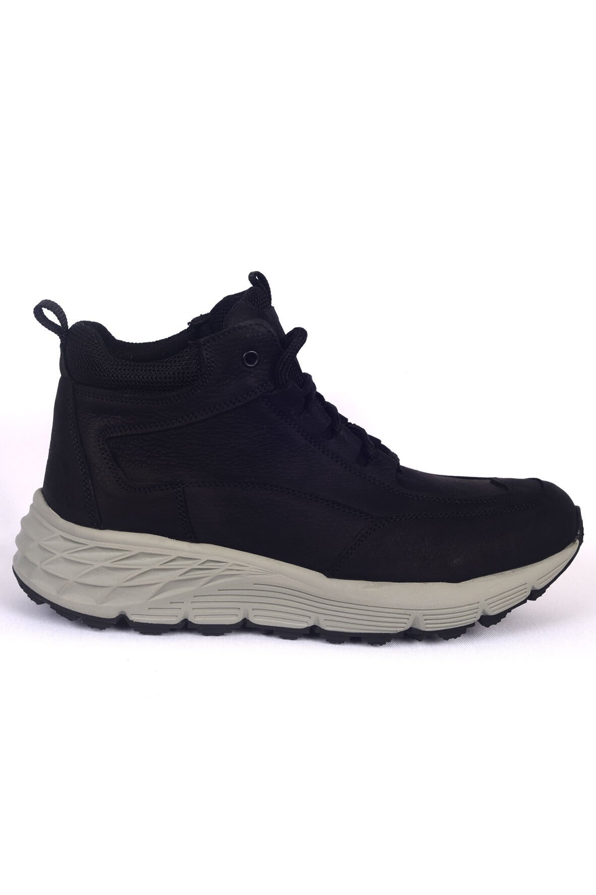Bulldozer 250058 Bağcıklı Ortapedik İç Taban Kauçuk Lat Tabanlı Yarım Boğazlı Siyah Erkek Bot