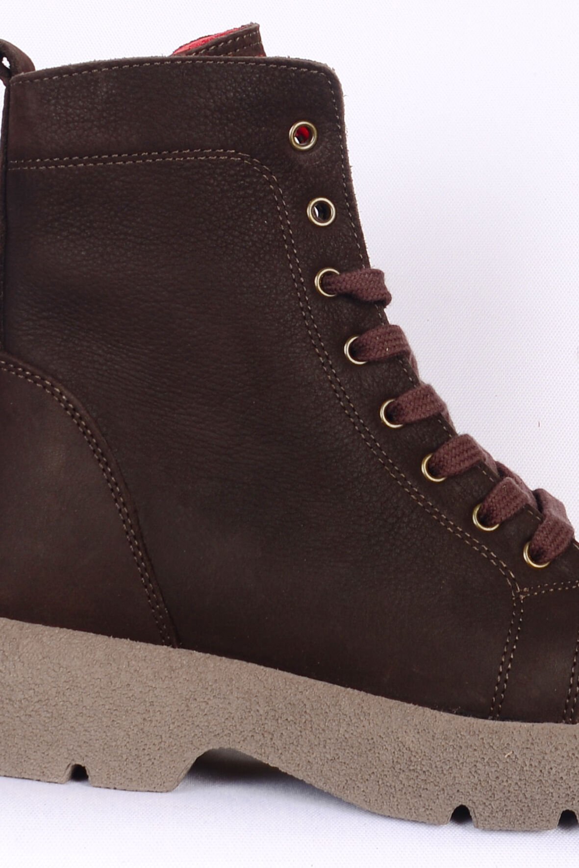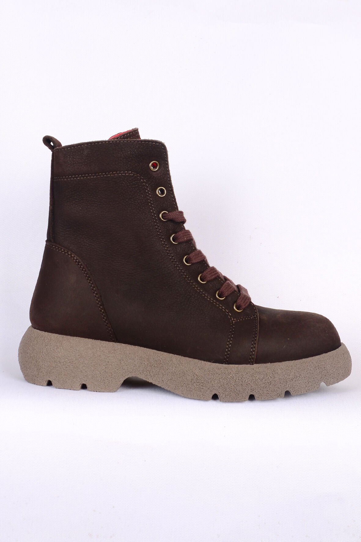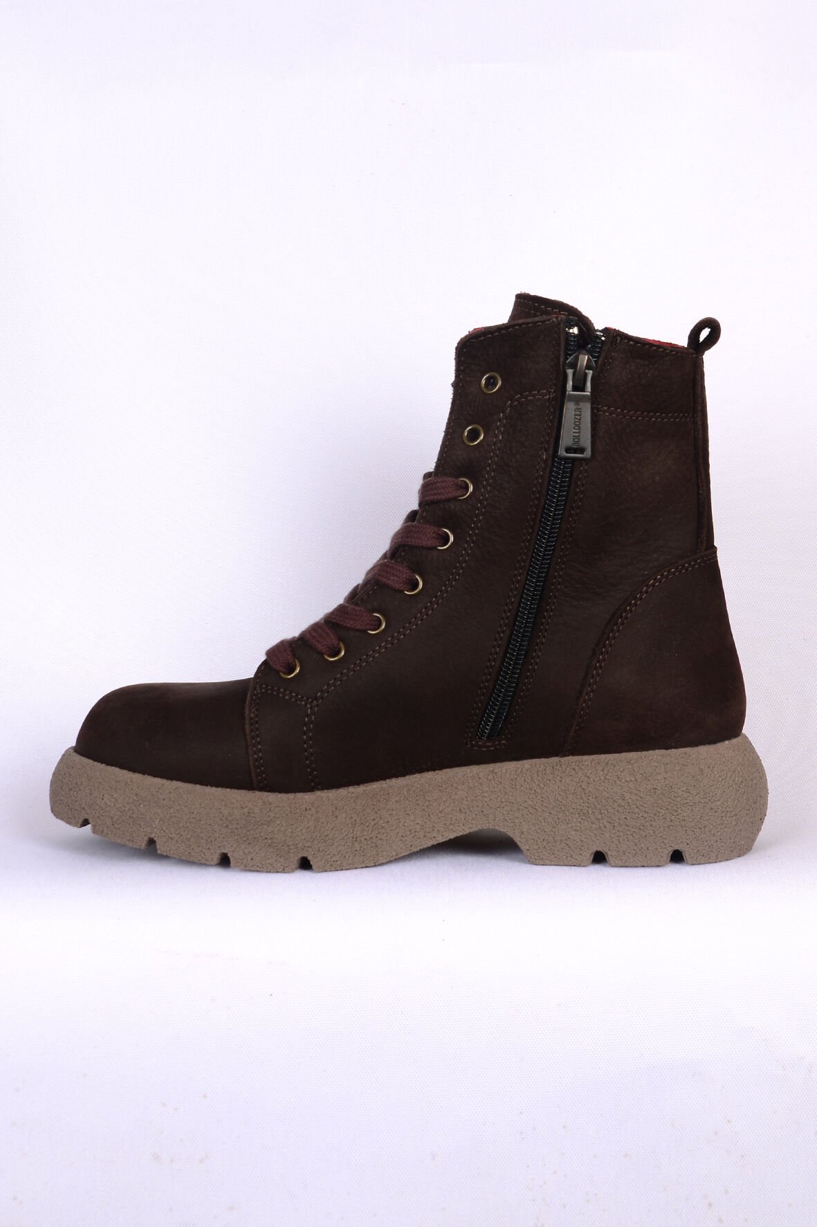 Bulldozer 250501 Bağcıklı Yandan Fermuar Destekli Tabanı özel Kalın Kaydırmaz Özellikli Kahverengi Nubuk Kadın Bot