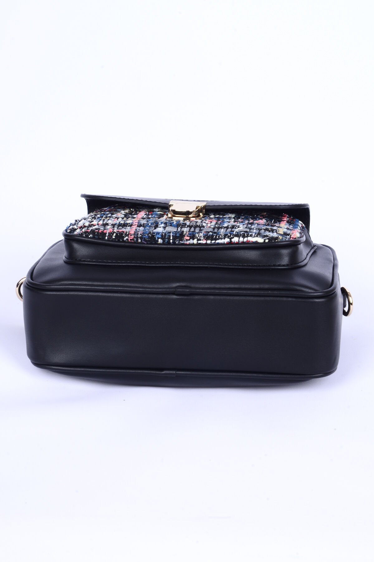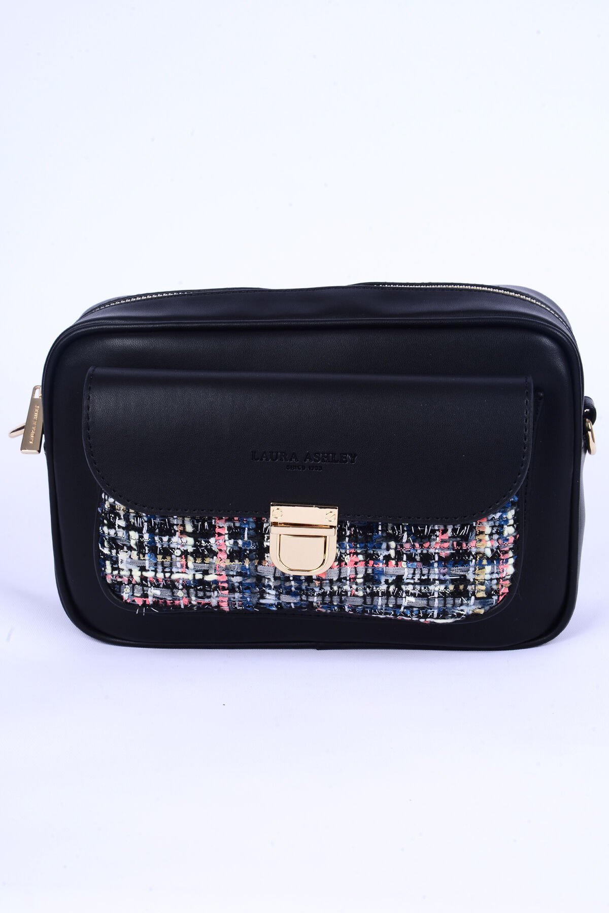 Carus Laaw23000016 Siyah Kadın Laura Ashley Kumaş Detaylı Deri Omuz Çanta
