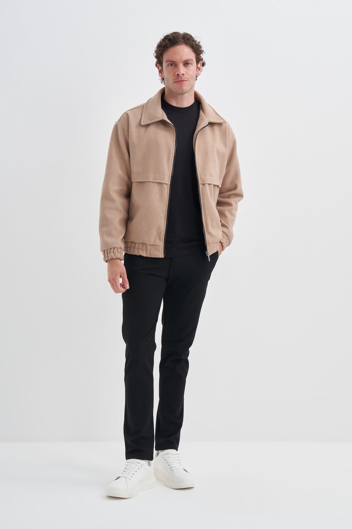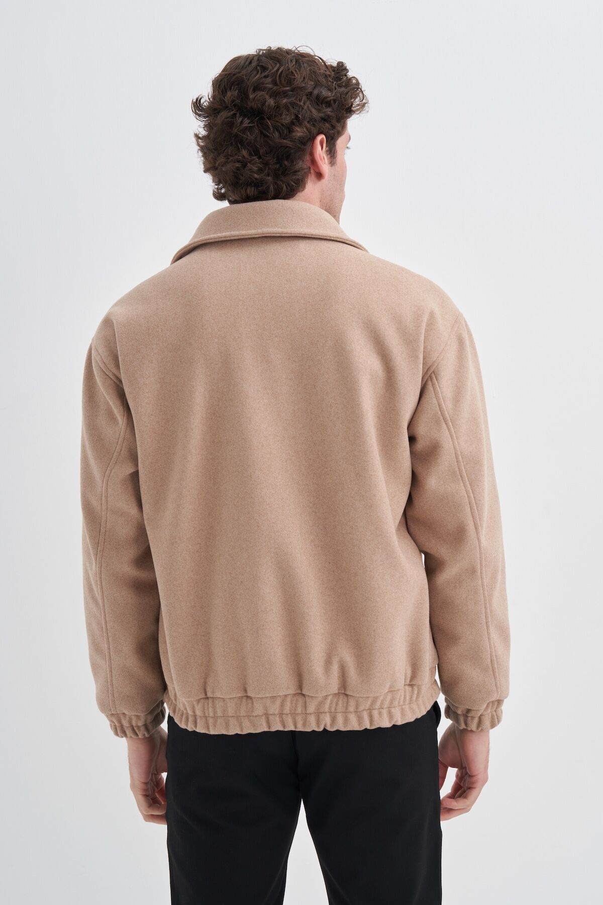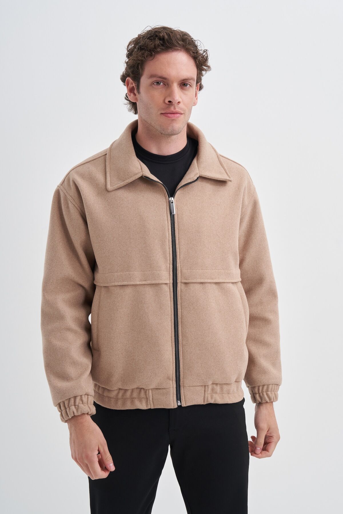 Cazador 10330 Bej Erkek Astarlı Regular Fit Kolu Beli Büzgülü Kaşe Mont