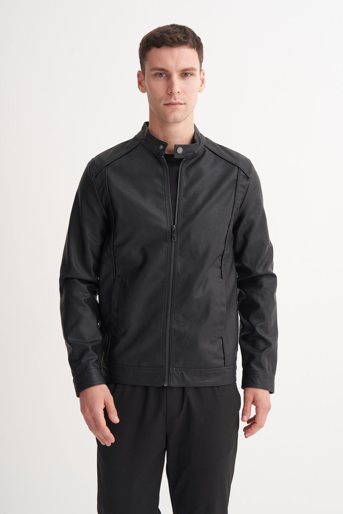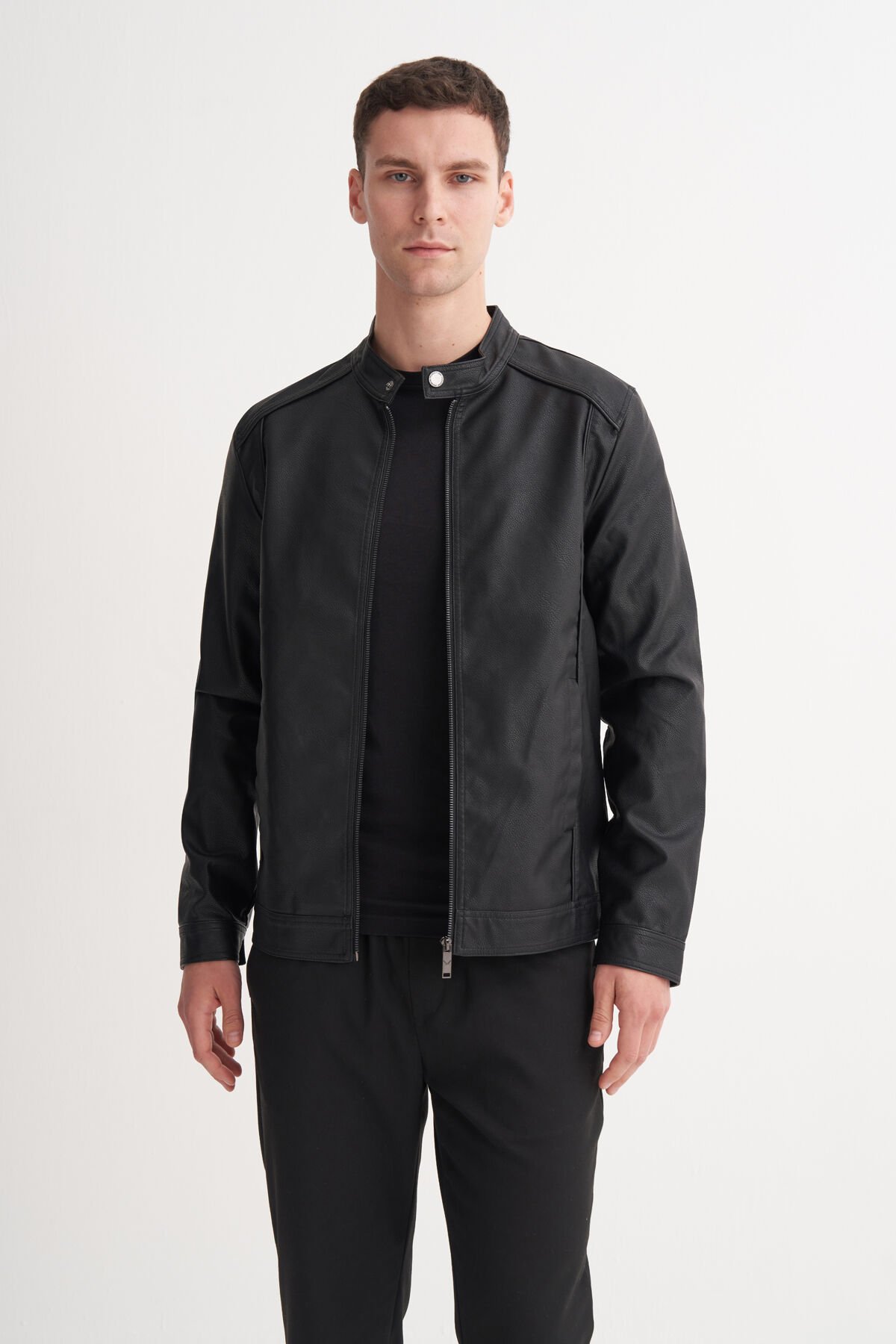 Cazador 13305 Siyah Erkek Cepli Deri Ceket