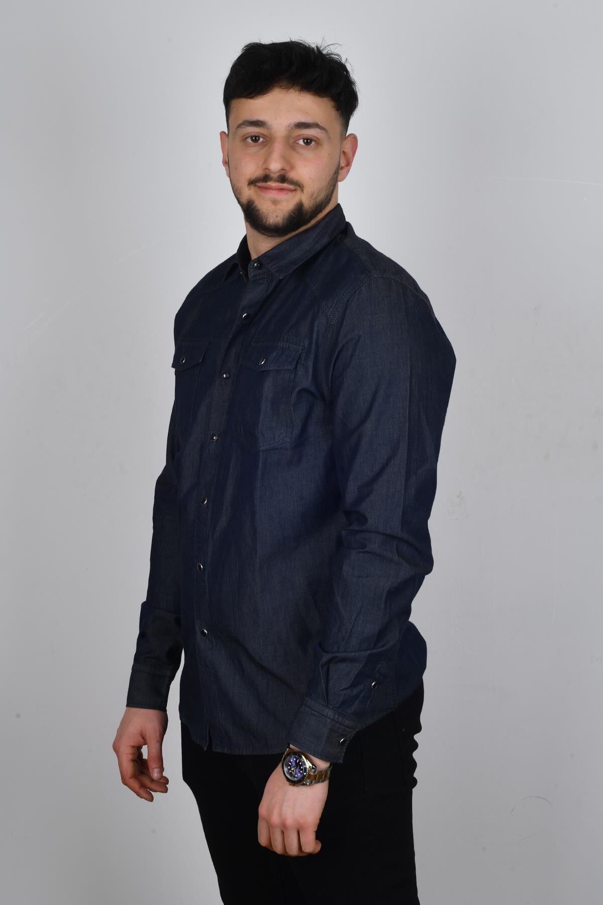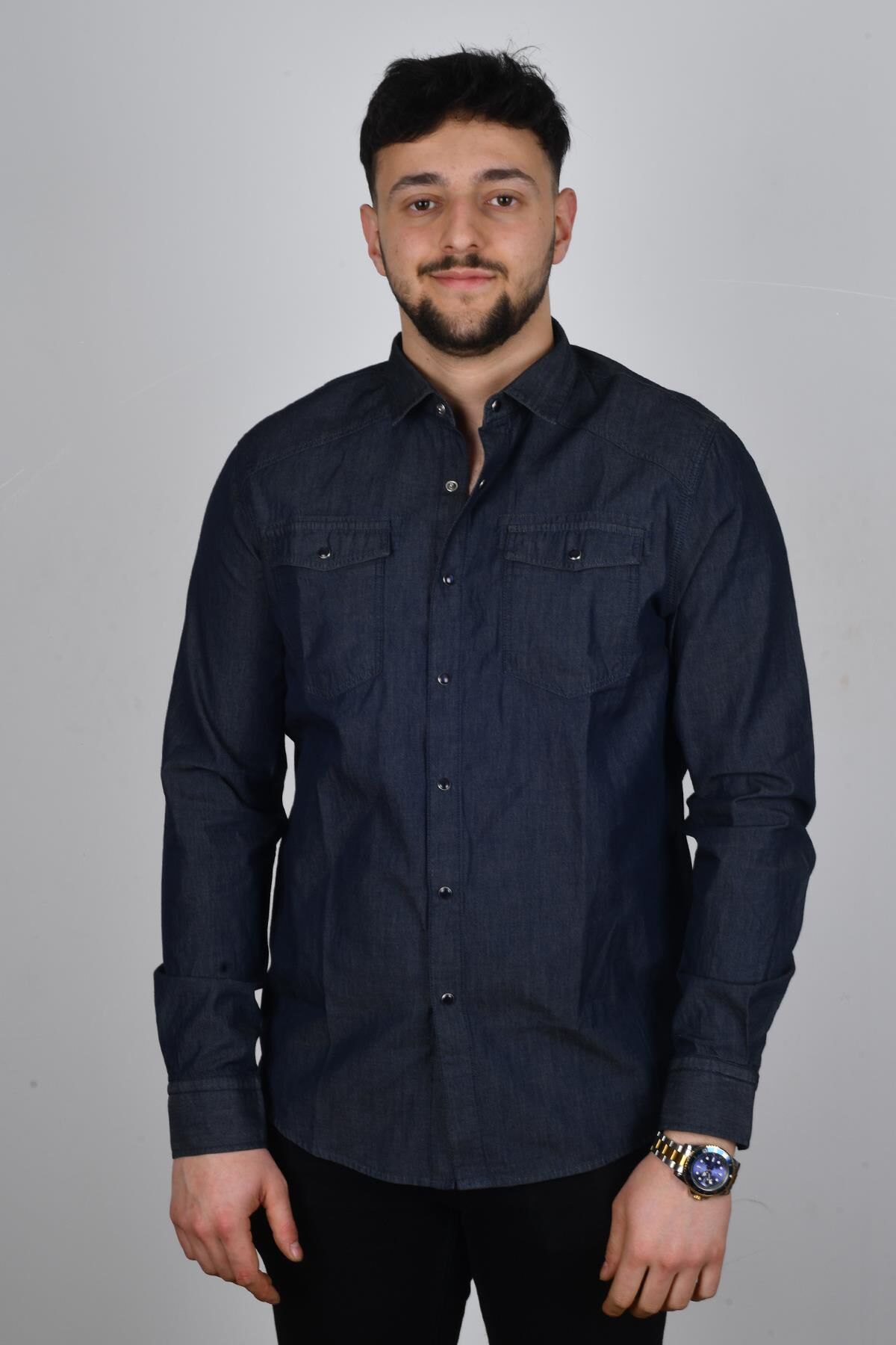 Cazador 22YCEEO02706 Erkek Lacivert Önü Cepli Kot Gömlek