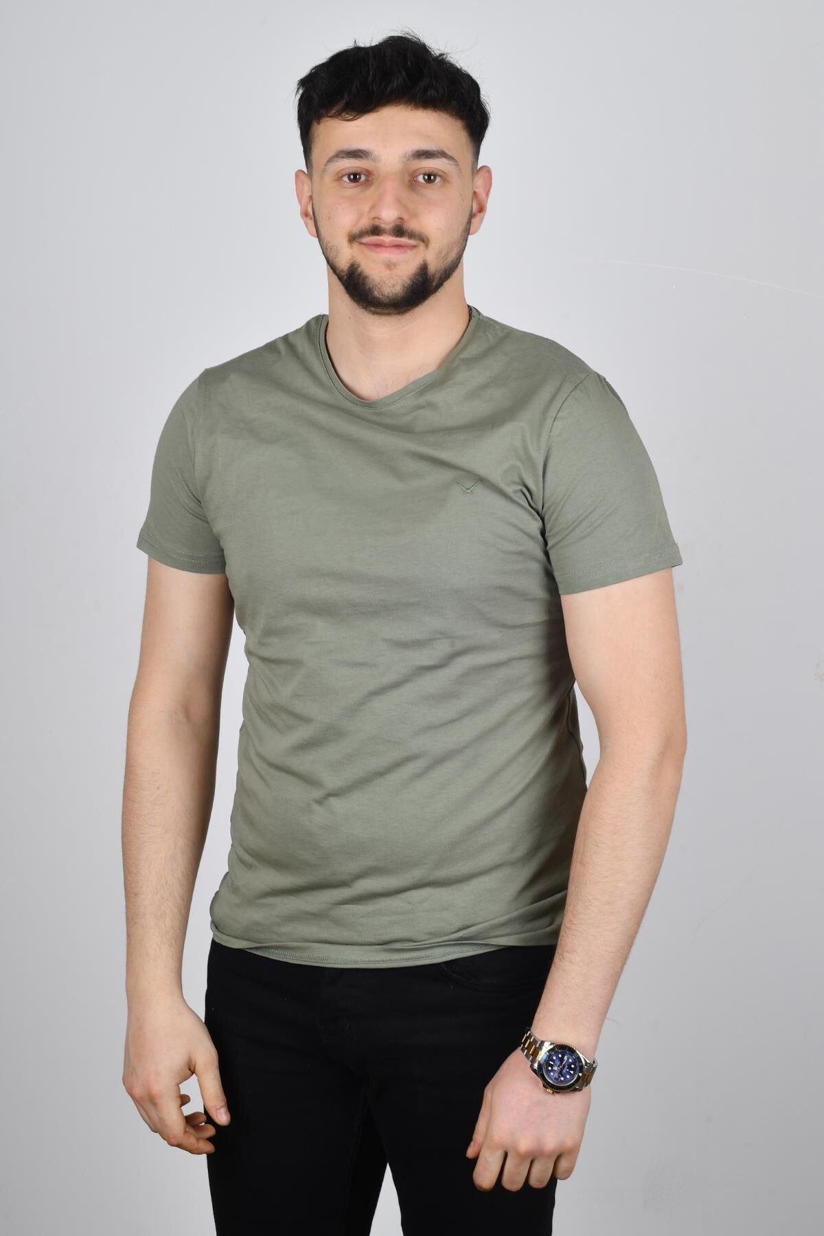 Cazador 22YCEEO04623 Erkek Haki Biskilet Yaka T-shirt