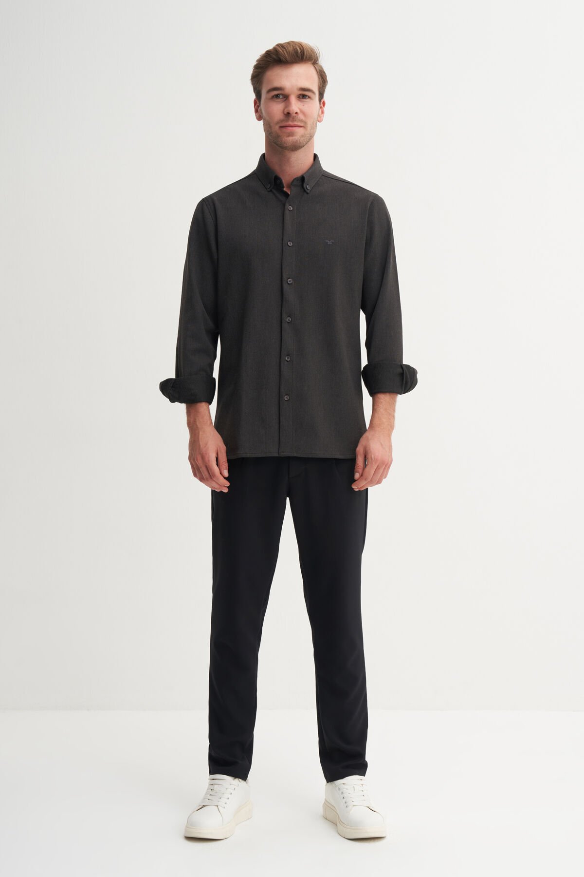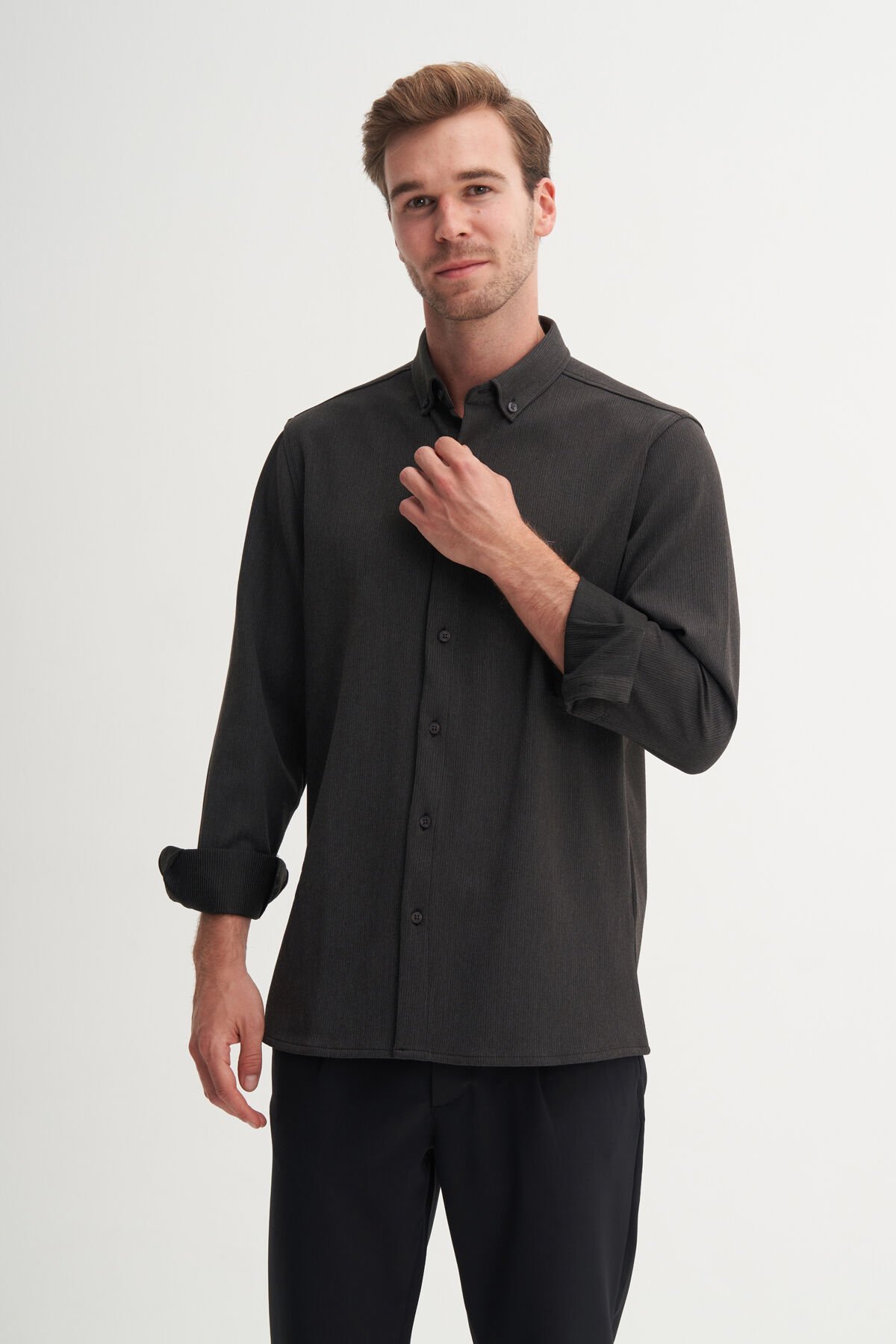 Cazador 23145 Antrasit Erkek Fitilli Regular Fit Gömlek