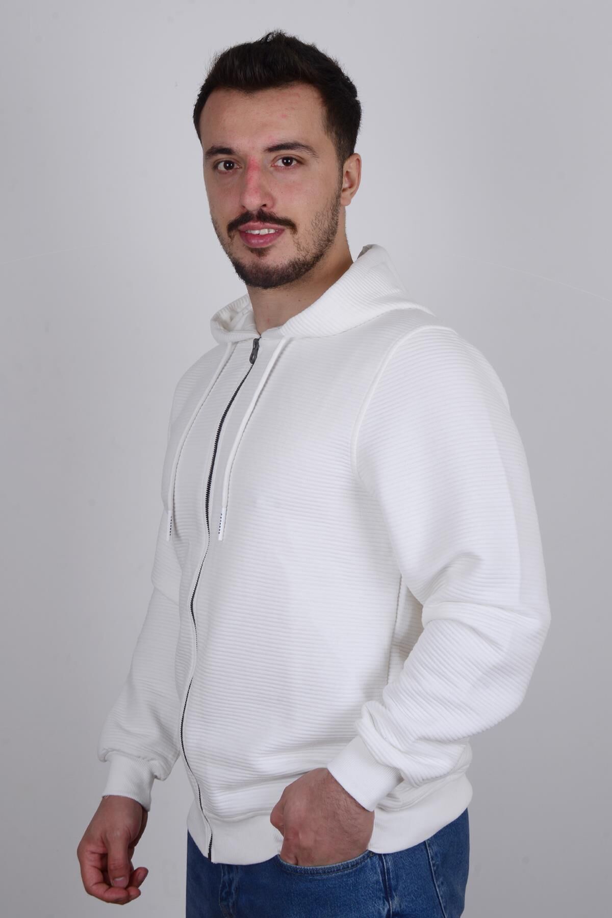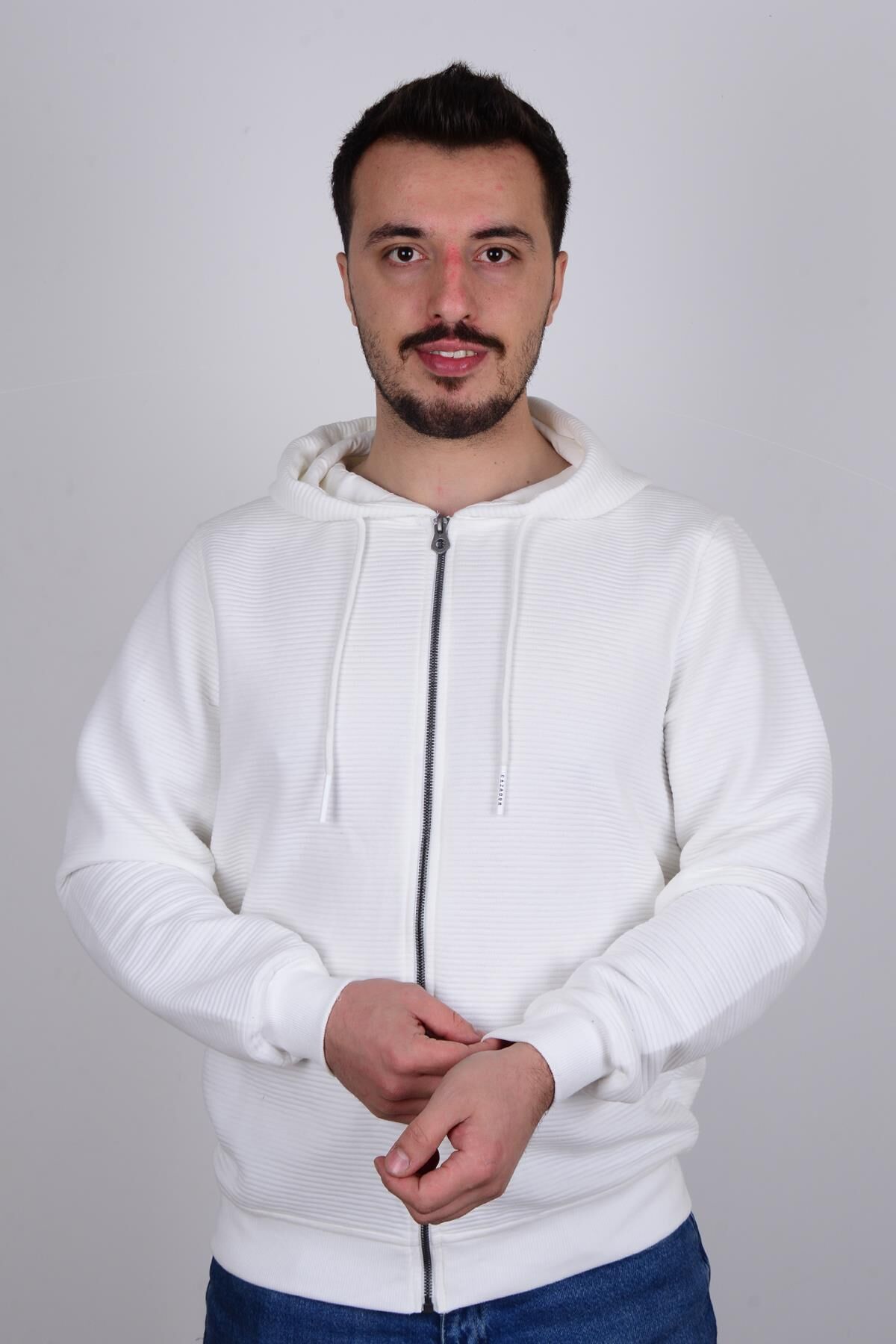 Cazador 23KCEEO05010 Ekru Önü Fermuarlı Kapüşonlu Erkek Sweat