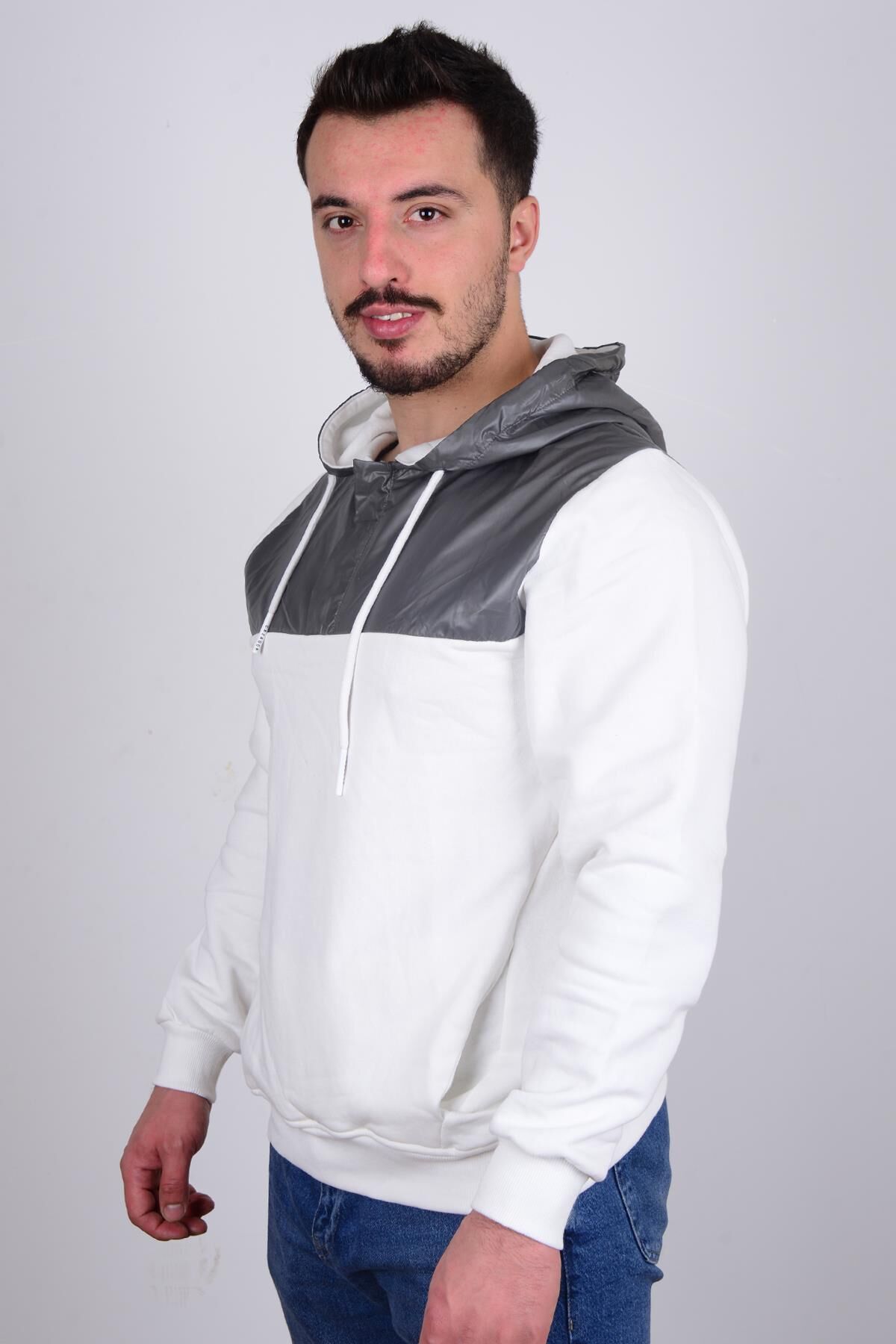 Cazador 23KCEEO05041 Ekru Önü Çıtçıtlı Fermuarlı Kapüşonlu Erkek Sweat